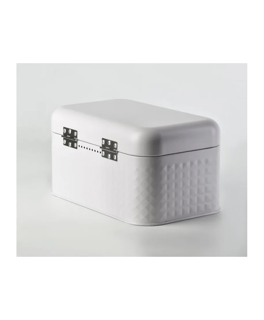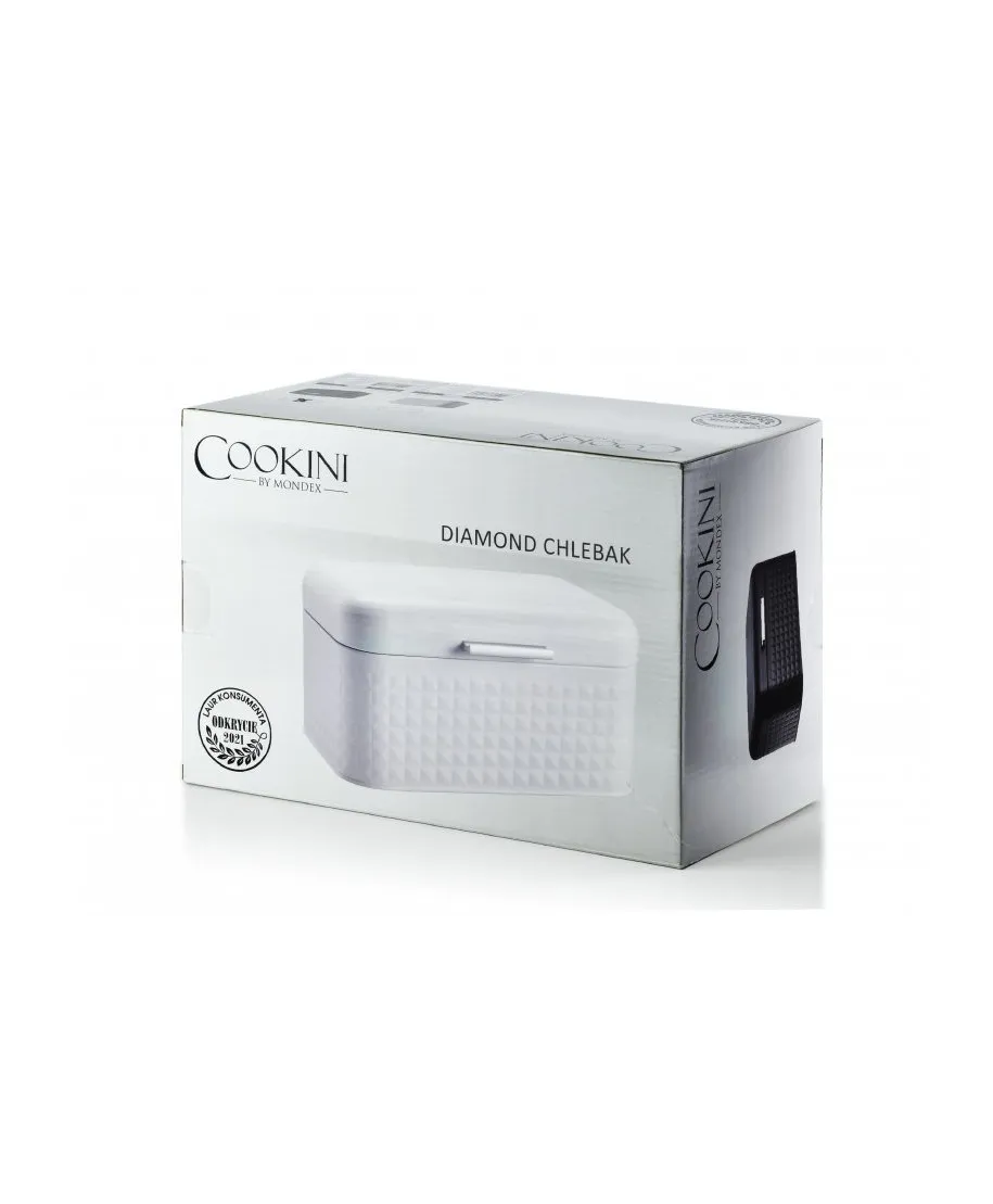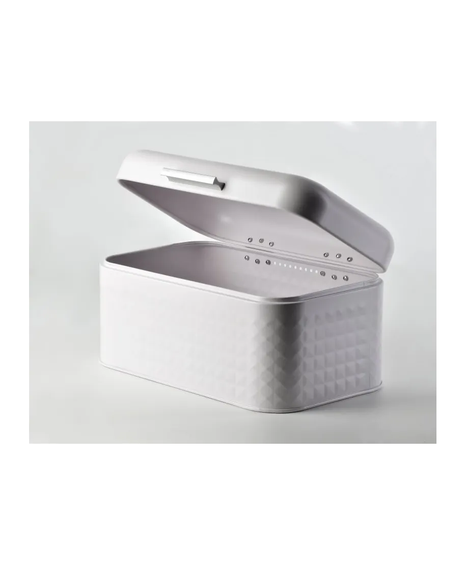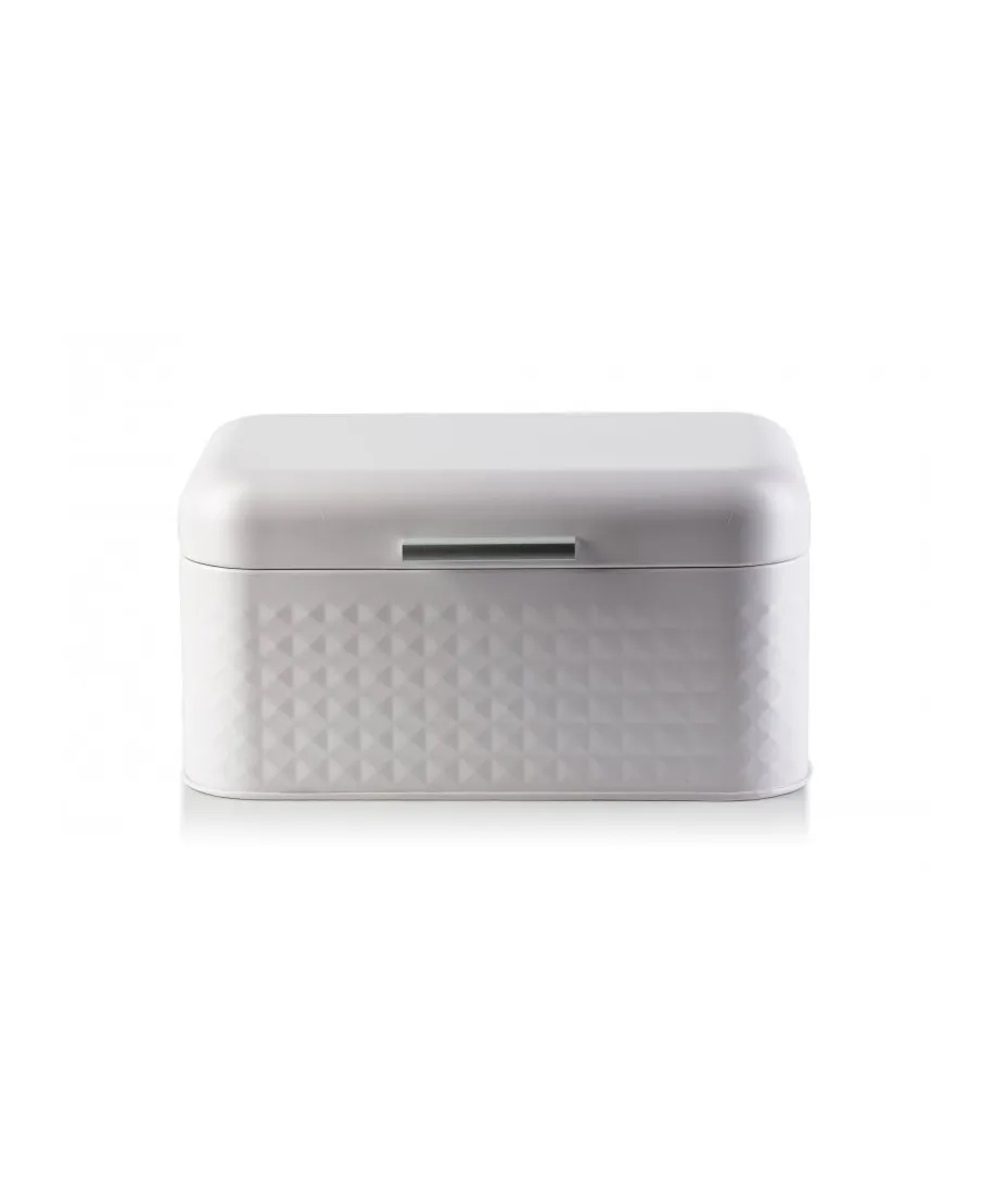 Metalowy chlebak w kolorze białym z kolekcji DIAMOND WHITE. Posiada srebrny uchwyt i delikatne tłoczenie. Idealny do nowoczesnej kuchni.wymiary:30.5x20.7x15.1cm