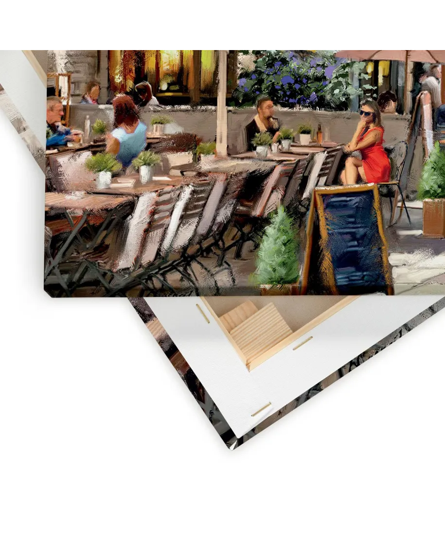 Oryginalny obraz na płótnieCourtyard Cafe - Richard Macneil Oryginalny i licencjonowany obraz na płótnie idealny na każdą ścianę. Nasze obrazy wyróżniają: Fantastyczne barwy Wysokie nasycenie barw i ostrość, kolory utrzymują się przez długie lata. Płótno wysokiej jakości Płótno bawełniane 300g/m2 jest trwałe i mocne, jego struktura jest naturalna. Trwałe kolory, Dodatkowo lakierowana powierzchnia sprawia, że kolory są żywe przez dziesięciolecia. Solidna rama, Wykonana jest z naturalnego, sosnowego drewna, jest mocna i gruba a obraz solidny i wytrzymały. Zadrukowane boki, obrazy posiadają zadrukowane boki, nie potrzebują żadnej dodatkowej oprawy. Szczegóły techniczne: wydruk na płótnie bawełnianym 300g/m2 sosnowe krosna o grubości 2 cm i szerokości 3,5 cm druk cyfrowy wymiary obrazów 40x40 cm
