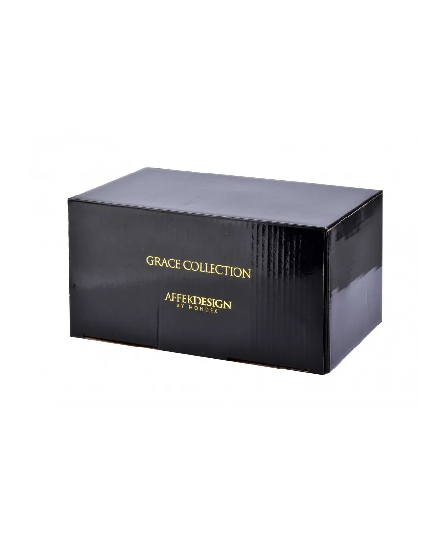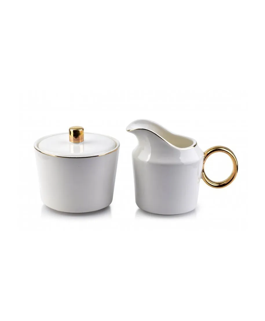 Porcelanowy zestaw cukiernicy z mlecznikiem z serii GRACE marki AFFEK DESIGN ze złotym rantem. Możliwe skompletowanie całej zastawy. Nie należy stosować w zmywarce.