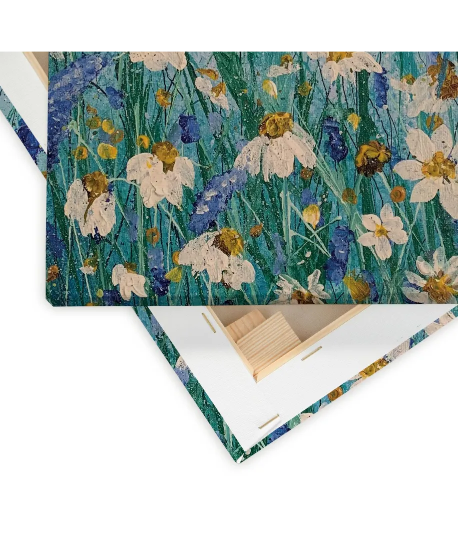 Daisies and Wild Pea Flowers - obraz na płótnie Naciągnięty na sosnowe krosna. Gotowy do zawieszenia na ścianę. Wykonany z najwyższą dbałością o detale. Obraz jest ostry a barwy nasycone. Ten egzemplarz posiada zadrukowane boki, nie trzeba go dodatkowo oprawiać. Płótno bawełniane na który został naniesiony obraz jest bardzo mocne i posiada ciekawą fakturę. Blejtrama wykonana jest natomiast z grubego drzewa sosnowego. Jest solidna, jej szerokość to 3,5 cm a grubość 2 cm. Kupując ten produkt masz pewność, że kupujesz z legalnego źródła i wspierasz artystów. Obraz jest oryginalny i posiada licencję. Lubisz wyróżniać się ciekawymi, ekskluzywnymi dekoracjami na ścianę? Ten obraz jest idealny dla Ciebie. Nikt nie przejdzie obojętnie obok niego, jest po prostu piękny. Dane techniczne: Płótno bawełniane 300g/m2. Sosnowe krosnao grubości 2 cm i szerokości 3,5 cm. Obraz zadrukowany cyfrowo. Wymiary obrazu 50x40 cm. Marka: Art Group