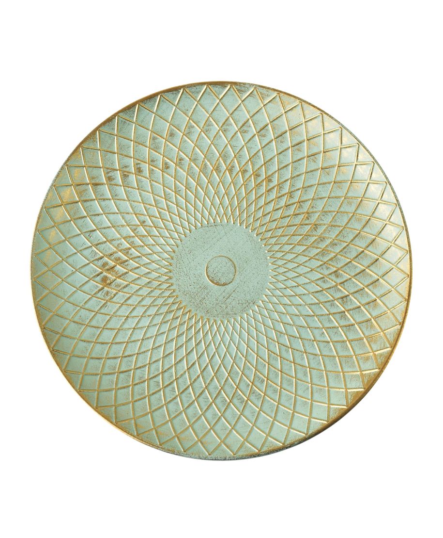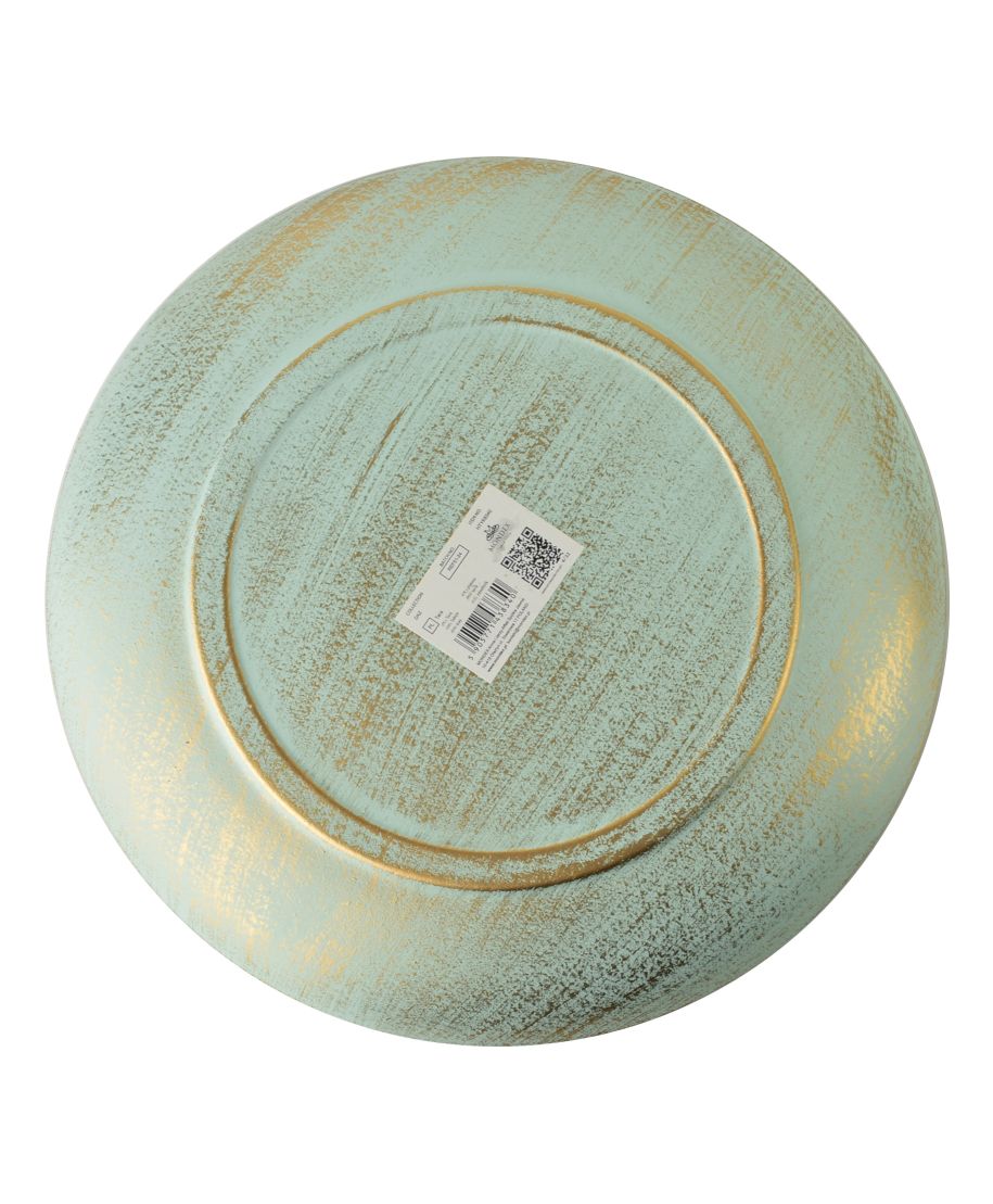 DAZ. Taca dekoracyjna okrągła 28 28 3 cm, pistacjowa z pozłacanym wykończeniem.Stylowa taca dekoracyjna z kolekcji DAZ marki MONDEX . since 1986.Wykonana z wysokiej jakości MDF-u, posiada delikatne tłoczenie oraz lekko pozłacane detale, które nadają jej subtelnego blasku i elegancji.Utrzymana w modnym odcieniu pistacjowym, doskonale wpisuje się w nowoczesne, jak i klasyczne aranżacje wnętrz.Świetnie sprawdzi się jako ozdobna taca na stół, komodę lub konsolę. Idealna do ekspozycji świec, biżuterii lub drobnych dekoracji. Nie jest przeznaczona do kontaktu z żywnością.