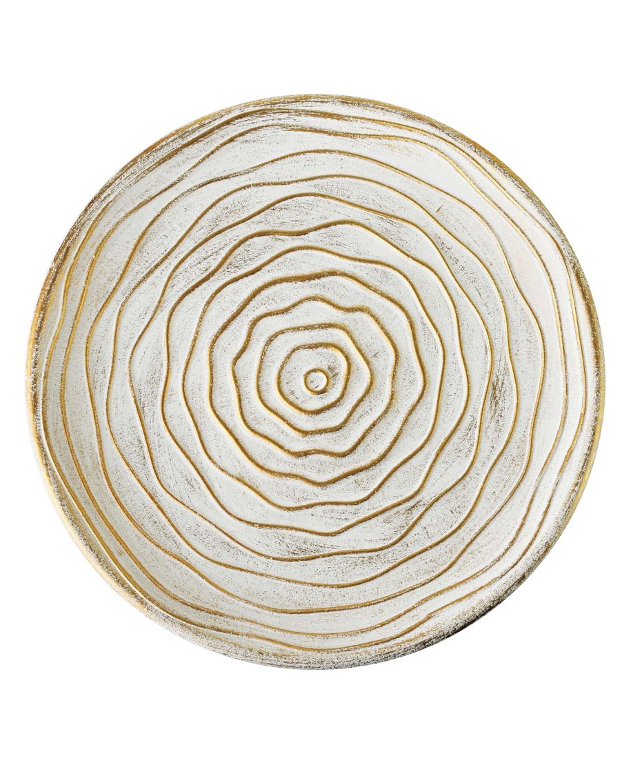 DAZ Taca dekoracyjna okrągła 29 29 3,5 cm, biała ze złotym przetarciemStylowa taca dekoracyjna z kolekcji DAZ marki MONDEX . since 1986.Wykonana z wysokiej jakości MDF-u w kolorze białym ze złotym przetarciem, które nadaje jej subtelnego, eleganckiego charakteru.Powierzchnia tacy ozdobiona jest tłoczeniem w nieregularne linie, co tworzy ciekawy, nietypowy efekt wizualny.Doskonale sprawdzi się jako element dekoracyjny stołu, komody lub toaletki, idealna do ekspozycji świec, ozdób lub biżuterii. Nie nadaje się do kontaktu z żywnością.