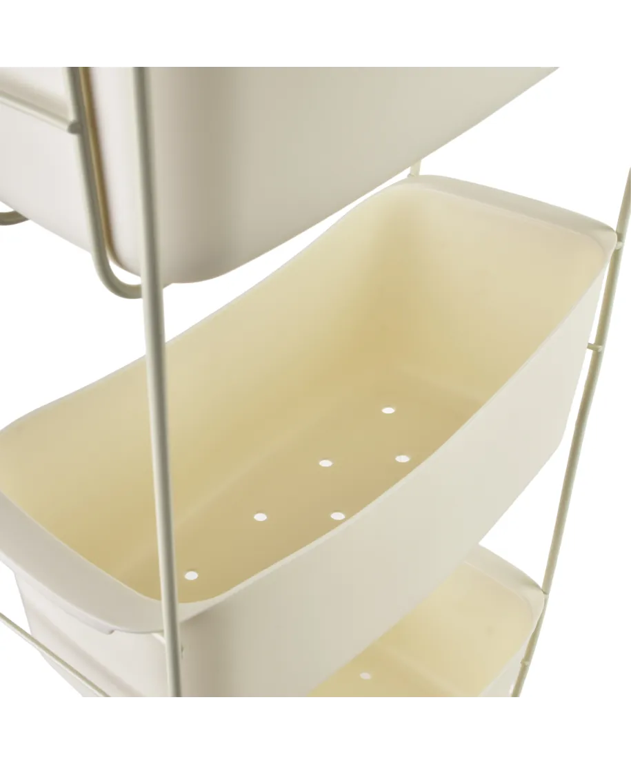 Półka trzy poziomowa DEA BEIGEto praktyczne i estetyczne rozwiązanie do przechowywania akcesoriów łazienkowych, idealne zarówno do ustawienia w łazience, jak i bezpośrednio pod prysznicem. Posiada solidny stelaż wykonany z metalu, któryzapewnia stabilność konstrukcji, oraz trzy przestronne kosze z wytrzymałego plastiku, wyposażone w otwory wentylacyjne umożliwiające odpływ wody i swobodny przepływ powietrza. Dzięki kompaktowym wymiarom 27,5 13 73 cm półka nie zajmuje dużo miejsca, a jednocześnie oferuje dużą pojemność do organizacji kosmetyków, środków higieny czy akcesoriów kąpielowych. Jej nowoczesny wygląd i funkcjonalność sprawiają, że świetnie wpisuje się w różne aranżacje łazienkowe, zapewniając porządek i wygodny dostęp do niezbędnych produktów.