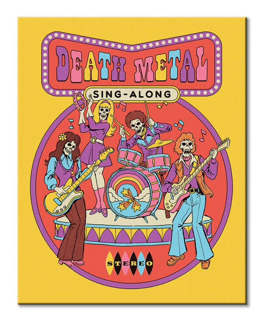Oryginalny obraz na płótnieDeath Metal Sing Along Oryginalny i licencjonowany obraz na płótnie idealny na każdą ścianę. Nasze obrazy wyróżniają: Fantastyczne barwy Wysokie nasycenie barw i ostrość, kolory utrzymują się przez długie lata. Płótno wysokiej jakości Płótno bawełniane 300g/m2 jest trwałe i mocne, jego struktura jest naturalna. Trwałe kolory, Dodatkowo lakierowana powierzchnia sprawia, że kolory są żywe przez dziesięciolecia. Solidna rama, Wykonana jest z naturalnego, sosnowego drewna, jest mocna i gruba a obraz solidny i wytrzymały. Zadrukowane boki, obrazy posiadają zadrukowane boki, nie potrzebują żadnej dodatkowej oprawy. Szczegóły techniczne: wydruk na płótnie bawełnianym 300g/m2 sosnowe krosna o grubości 2 cm i szerokości 3,5 cm druk cyfrowy wymiary obrazów 40x50 cm