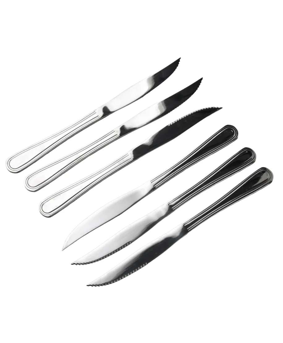 Komplet 6 noży DHALIA o długości 22,8cm praktyczne i estetyczne uzupełnienie każdej kuchni. Noże wykonane zostały z wysokiej jakości stali nierdzewnej, co zapewnia trwałość, odporność na korozję oraz długotrwałą ostrość. Ich uniwersalny rozmiar sprawia, że świetnie sprawdzają się do codziennego użytku . zarówno do krojenia warzyw, owoców, jak i mięsa czy pieczywa. Gładka powierzchnia ułatwia czyszczenie, a możliwość mycia w zmywarce czyni je wyjątkowo wygodnymi w codziennej pielęgnacji. Nowoczesny i elegancki wygląd noży DHALIA sprawia, że będąone nie tylko funkcjonalnym, ale i stylowym dodatkiem do kuchni. długość: 22,8cm