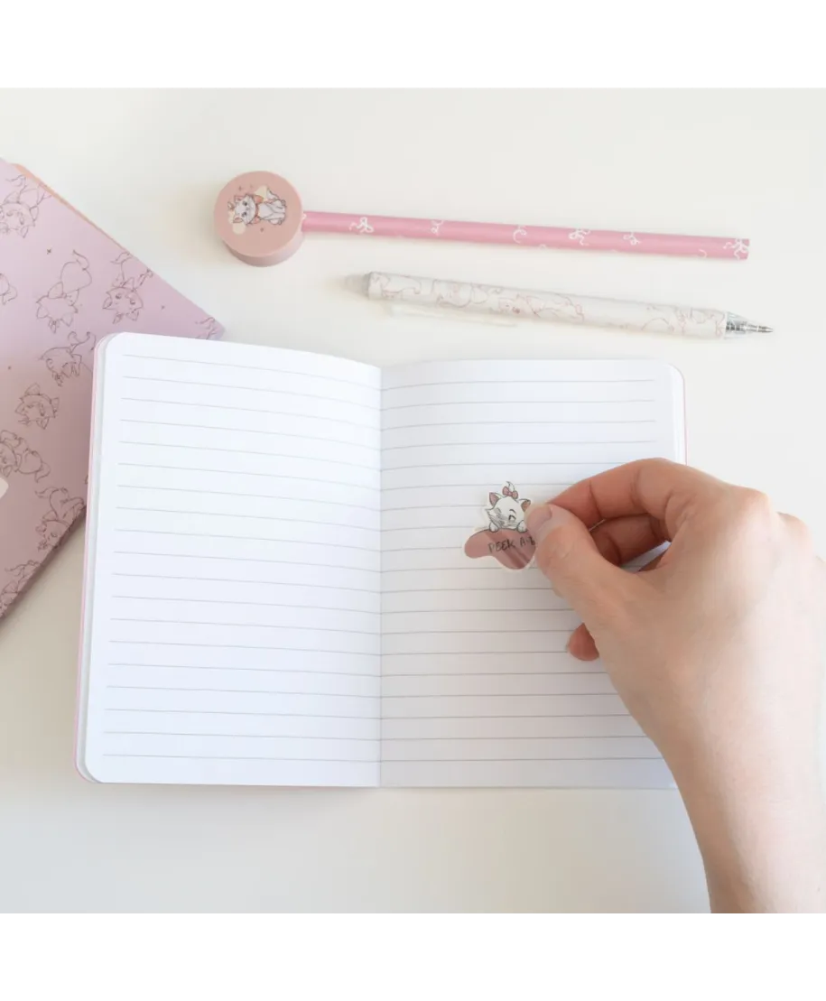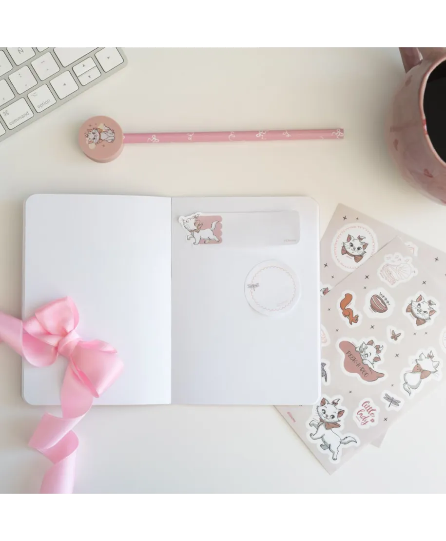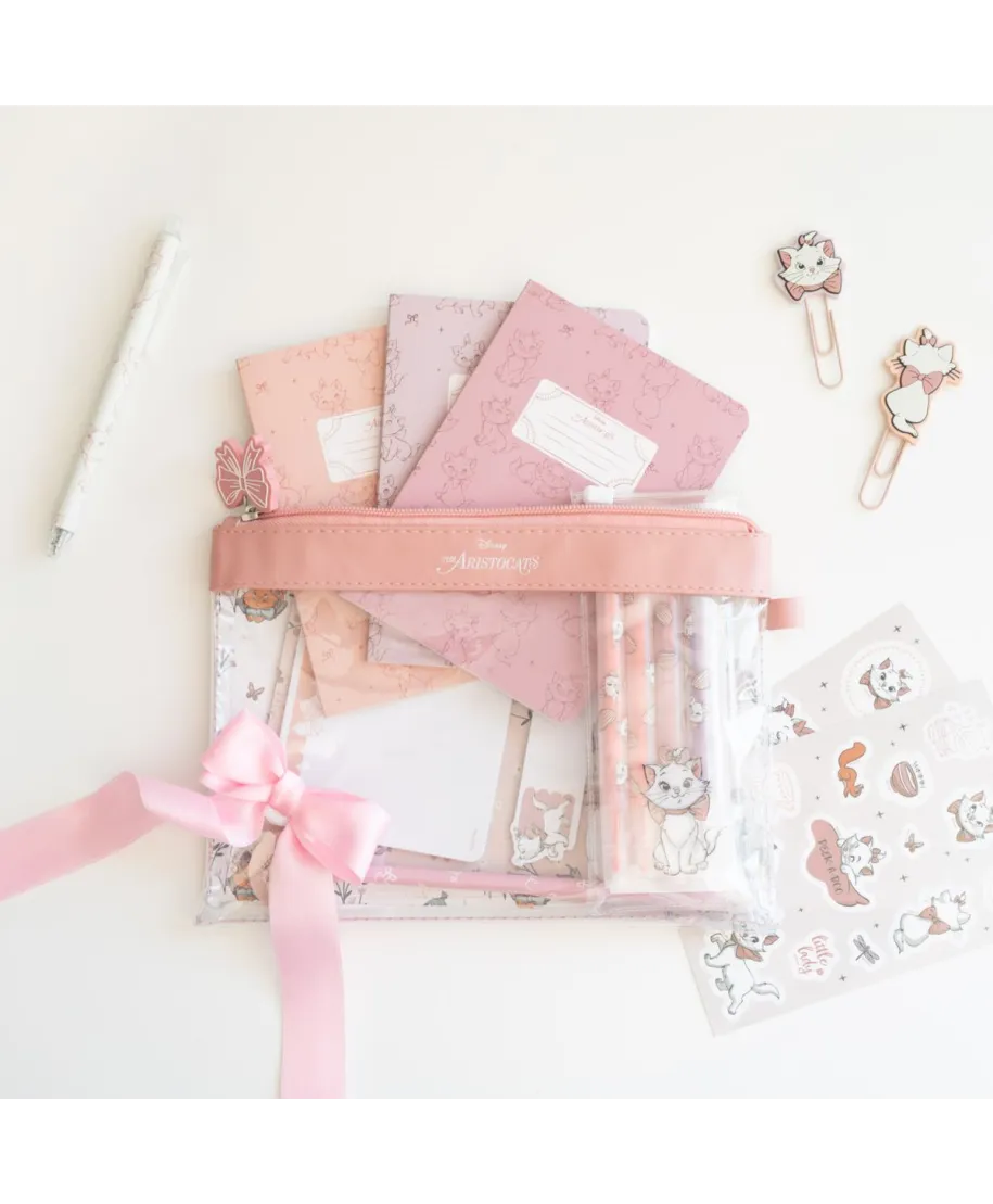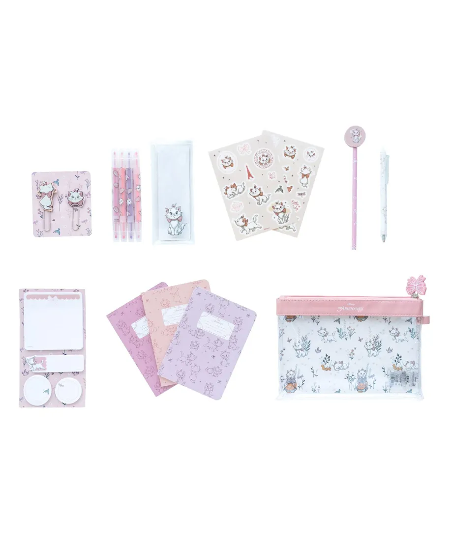 Disney Bonjour Marie zestaw przyborów szkolnych Zestaw szkolny z motywem Disney Bonjour Marie 3 zeszyty A6, piórnik z zakreślaczami, długopis, ołówek, karteczki, spinacze, naklejki. Szczegóły techniczne Wymiary opakowania: 22 x 16 x 3 cm Materiał: PU + PVC Zamknięcie: zamek błyskawiczny Ilość elementów: 12 Oryginalny, licencjonowany produkt idealny zestaw do szkoły lub na prezent.