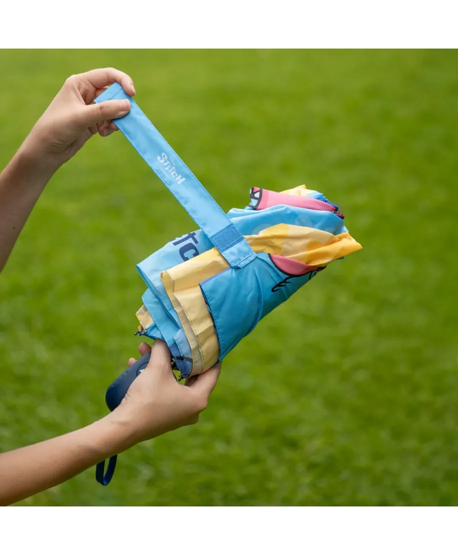 Oryginalny parasol Disney Stitch Produkt oryginalny i licencjonowany, przy zakupie wspierasz ulubionych artystów. Parasolki wykonane są z dbałością o każdy szczegół. Wymiary złożonego parasola 7x30cm Średnica otwartego parasola100 cm i wysokość 57 cm, Posiada wytrzymałe ramiona zapobiegające przed połamaniem Wykonany z materiału wodoodpornego Zapinany na rzep Dzięki swoim wymiarom jest bardzo kompaktowy i łatwo go przechować w torbie czy plecaku.