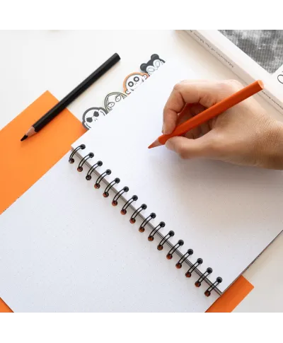 Disney The Nightmare Before Christmas - notes A5 kołozeszyt Ten wyjątkowy notes A5 inspirowany kultowym filmem "The Nightmare Before Christmas" to doskonały wybór dla fanów, którzy cenią oryginalność i funkcjonalność. Posiada miękką, matową okładkę oraz niestandardową oprawę drutową, co sprawia, że jest wygodny w użytkowaniu na co dzień. Notes zawiera 80 arkuszy (160 stron) papieru o gramaturze 80 g/m2, co zapewnia odpowiednią jakość do pisania. Dodatkowo, w środku znajdują się cztery niestandardowe przekładki, które ułatwiają organizację notatek. Szczegóły techniczne Wymiary: 14,8 x 21 cm Liczba stron: 160 (80 arkuszy) Materiał: Papier 80 g/m2 Oprawa: Kołozeszyt Licencjonowany produkt W 100% oryginalny produkt Disney, licencjonowany i idealny na prezent dla fanów filmu "The Nightmare Before Christmas".