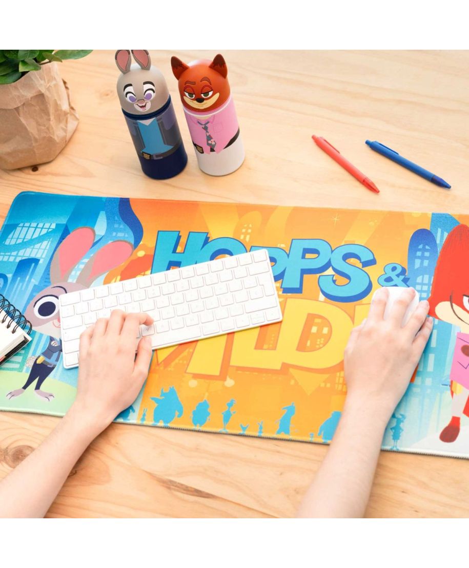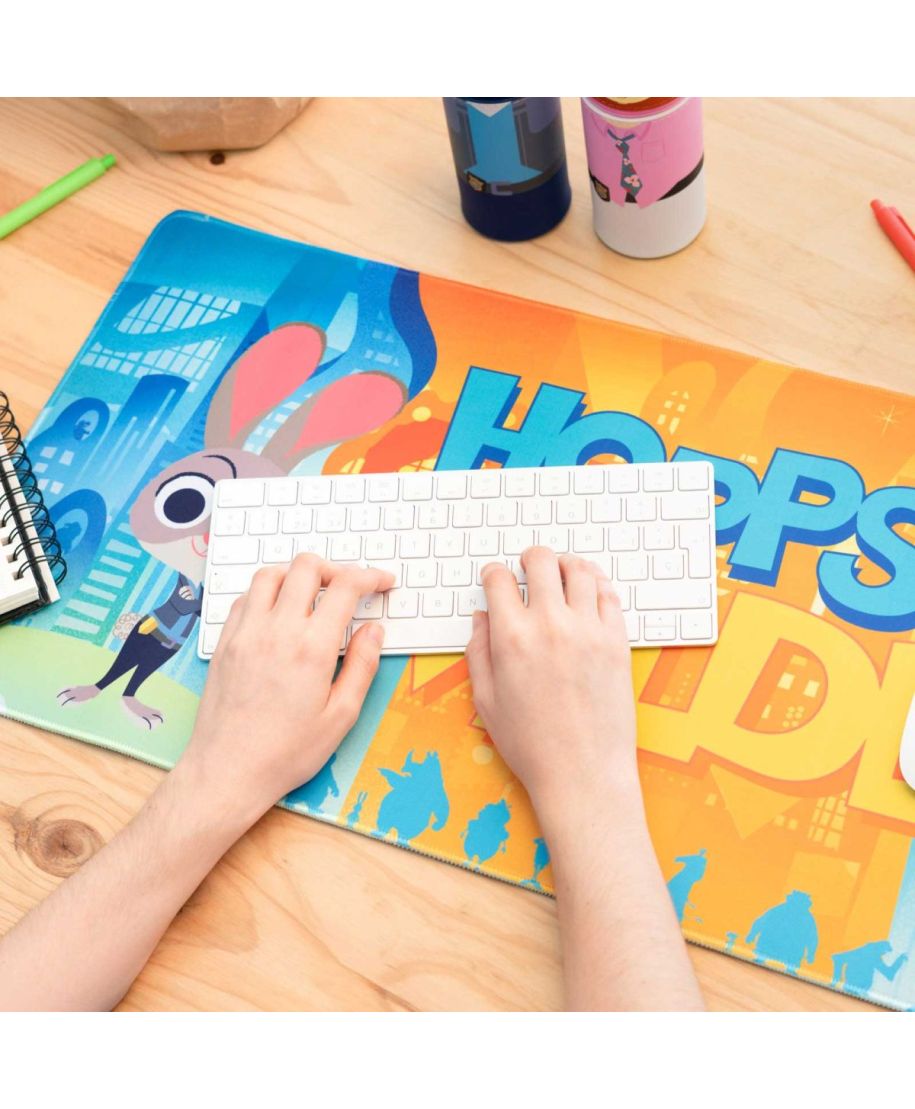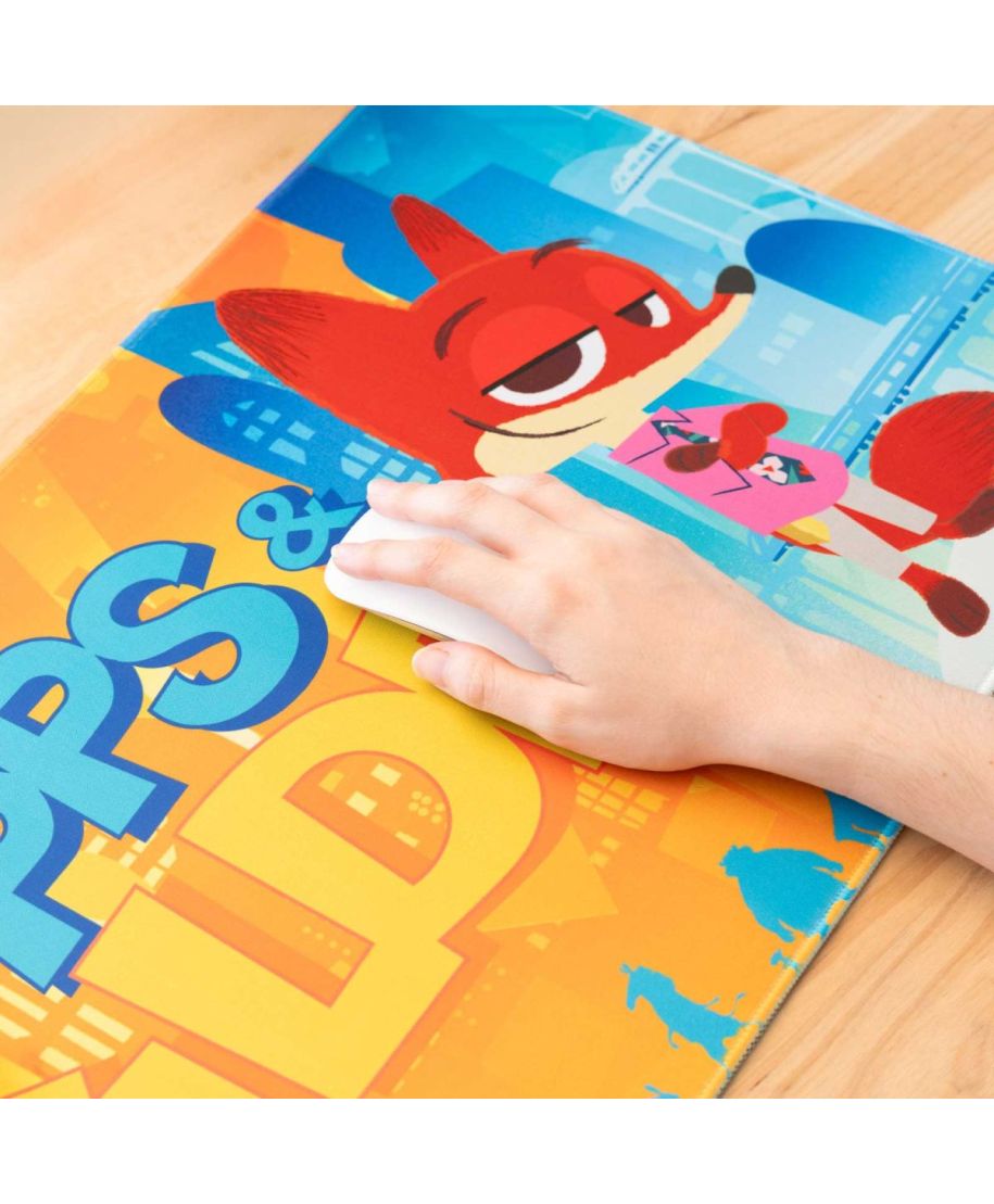 Disney Zwierzogród - podkładka pod myszkę Numer katalogowy: MGGE098 Producent: Erik Podkładka Disney Zwierzogród od Erik wykonana z tkaniny poliestrowej i gumowego spodu. Duży format 80x35 cm, gładka powierzchnia i antypoślizgowa podstawa zapewniają komfort użytkowania. Kolorowy nadruk z bohaterami filmu dodaje uroku i filmowego klimatu każdemu biurku. Szczegóły techniczne Wymiary: 80x35 cm Materiał: tkanina poliestrowa, guma Powierzchnia: gładka, odporna na ścieranie Spód: antypoślizgowy Motyw: Zwierzogród (Disney Zootopia) Producent: Erik Oryginalny produkt na oficjalnej licencji Disney Zootopia, wyprodukowany przez Erik.