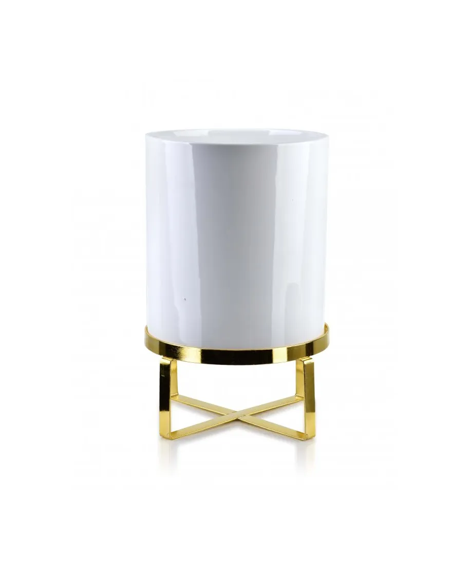 Doniczka na stojaku - Kwietnik biało złoty - 18x21cm