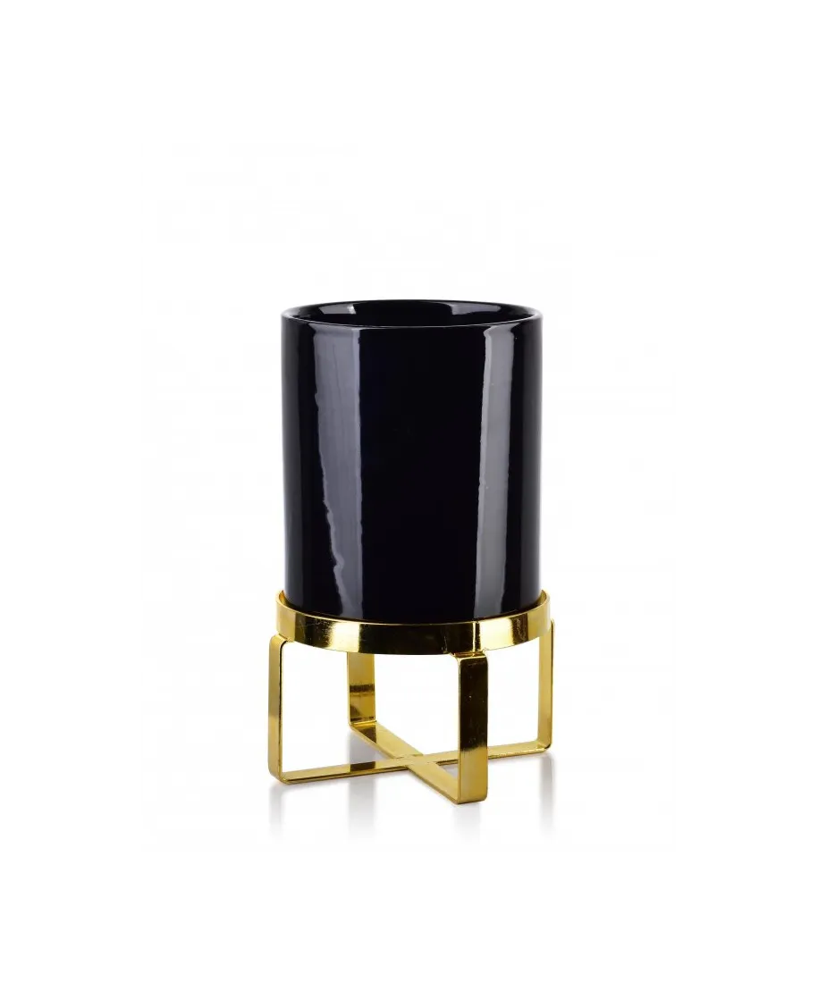 Doniczka na stojaku - Kwietnik czarno złoty - 13x15cm