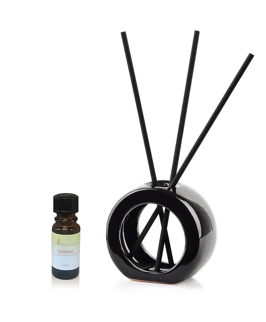 Dyfuzor ceramiczny z 3 patyczkami w zestawie. Idealna baza pod olejek. Do zestawu należy dokupić buteleczkę ulubionego olejku i wstawić do ceramicznej oprawy. Polecamy olejek z serii AROMATIQUE o symbolu NA. Dyfuzor ceramiczny z patyczkami to nie tylko stylowa dekoracja, ale takżepraktyczne urządzenie, które pozwala cieszyć się ulubionymi zapachami w całym pomieszczeniu. W zestawie znajdują się 3 patyczki, które wchłaniają olejek zapachowy i delikatnie wydzielają go do powietrza, tworząc przyjemną atmosferę. Dyfuzor ceramiczny jako element wystroju wnętrza, dzięki swojemu designerskiemu wyglądowi dyfuzor ceramiczny stanowi również interesującą ozdobę w pomieszczeniu. Można postawić go na półce, stoliku lub komodzie, aby dodać charakteru i subtelności każdemu wnętrzu. Jak używać dyfuzora ceramicznego aby cieszyć się ulubionymi zapachami? Wystarczy wstawić z ceramiczną oprawę buteleczkęolejku (w zestawie nie jest on dołączony) i wetknąć patyczki. Im więcej patyczków zostanie umieszczonych w dyfuzorze, tym intensywniejszy będzie zapach. Wystarczy od czasu do czasu obrócić patyczki, aby zapewnić równomierne uwalnianie zapachu. wymiar oprawy: 8x4xh7,5cm długość patyczka: 18,5cm (kolor czarny) zapakowany jednostkowo w eco box:4,5x8,5xh19cm waga:112g/134g z opakowaniem