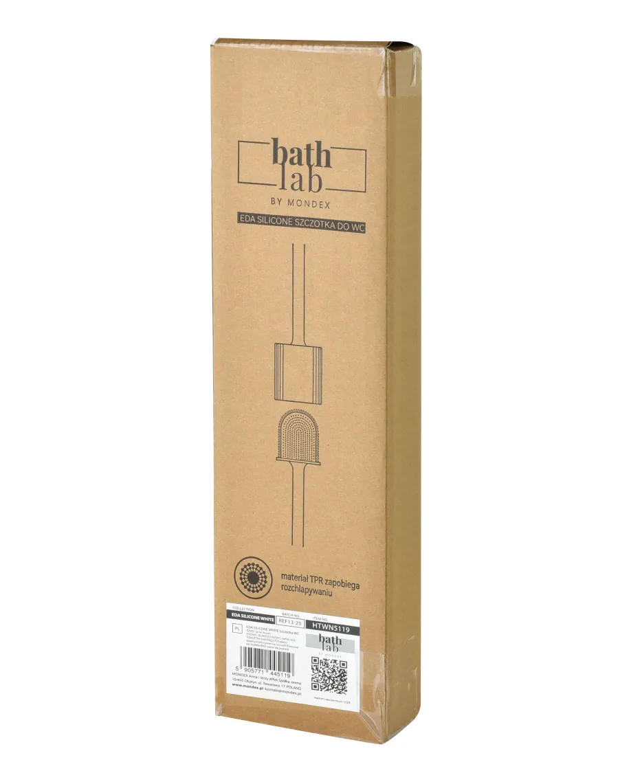 Szczotka do Wc z serii EDA SILICONE marki Bathlab by MONDEX. Silikonowa głowica szczotki z materiału TPR. Miękka i jedyna w swoim rodzaju konstrukcja głowicy szczotki dokładnie wyczyścić trudno dostępne miejsca. Prosta kompaktowa budowa pozwala zaoszczędzić miejsce. Szerokie spektrum zastosowania. Może być stosowana nie tylko w toaletach. Szczotkado WC nadaje się do wszystkich umywalek i wanien z ceramicznymi powierzchniami szklanymi z tworzywa sztucznego. Szczotka jest niezbędnym elementem wyposażenia każdej łazienki, ponieważ pozwala utrzymać czystość i higienę w toalecie. To doskonałe rozwiązanie dla osób ceniących sobie estetykę i funkcjonalność. Innowacyjny design szczotki do WC Bathlab od MONDEX łączy w sobie minimalizm z nowoczesnością, pasując do każdego wnętrza. W zestawie znajduje się praktyczny pojemnik, który nie tylko ułatwia przechowywanie, ale również stanowi dodatkowe zabezpieczenie przed rozpryskiwaniem wody podczas czyszczenia. Wygodna w użyciu, łatwa do czyszczenia i niezwykle trwała . szczotka EDA SILICONE to element, który zmienia codzienne zadania w prostsze czynności. wymiary: 10x4xh36cm waga:196g/258g z opakowaniem zapakowana jednostkowo w eco box: 10x4x36cm