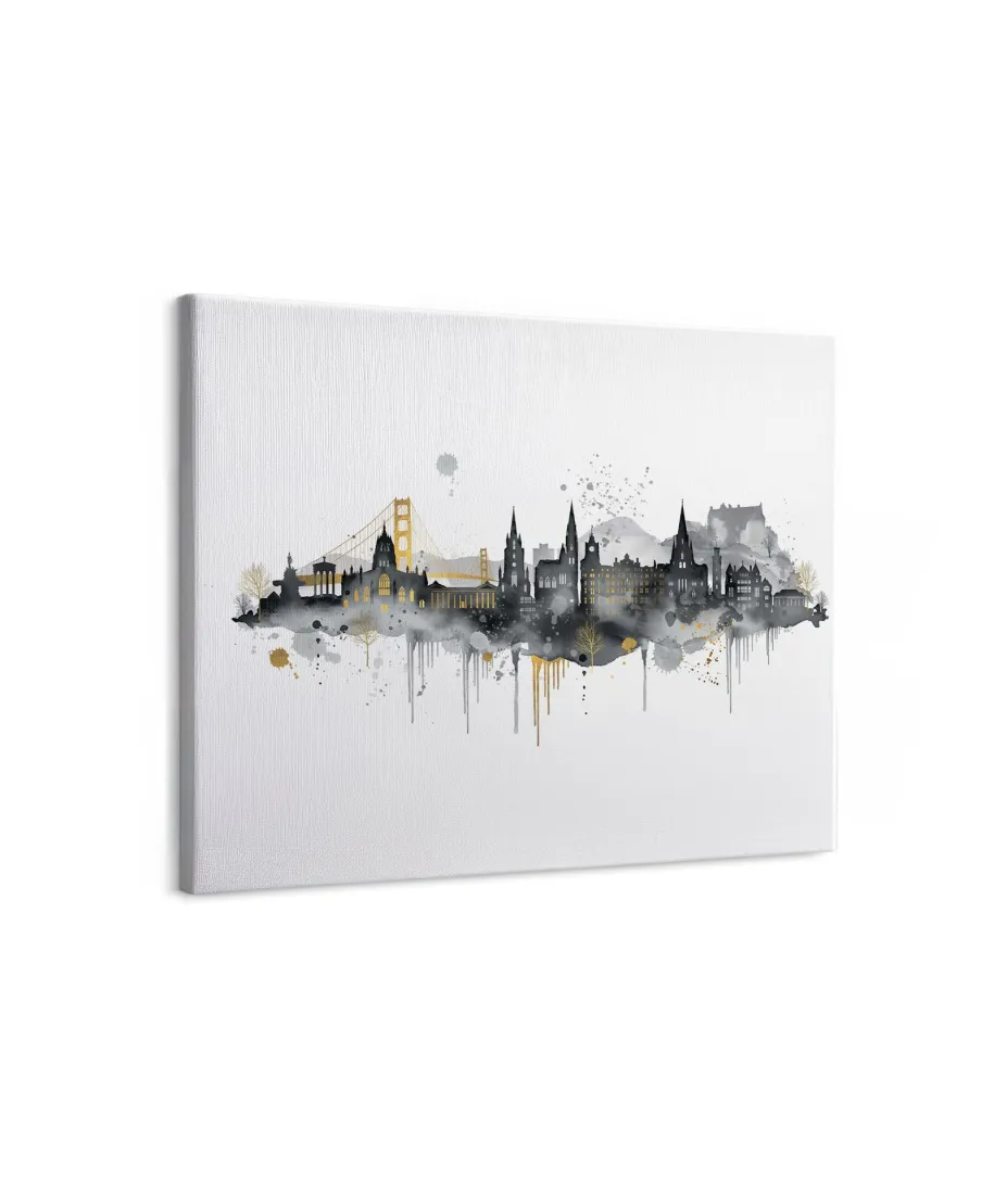 Edinburgh Skyline - obraz na płótnie Naciągnięty na sosnowe krosna. Gotowy do zawieszenia na ścianę. Wykonany z najwyższą dbałością o detale. Obraz jest ostry a barwy nasycone. Ten egzemplarz posiada zadrukowane boki, nie trzeba go dodatkowo oprawiać. Płótno bawełniane na który został naniesiony obraz jest bardzo mocne i posiada ciekawą fakturę. Blejtrama wykonana jest natomiast z grubego drzewa sosnowego. Jest solidna, jej szerokość to 3,5 cm a grubość 2 cm. Kupując ten produkt masz pewność, że kupujesz z legalnego źródła i wspierasz artystów. Obraz jest oryginalny i posiada licencję. Lubisz wyróżniać się ciekawymi, ekskluzywnymi dekoracjami na ścianę? Ten obraz jest idealny dla Ciebie. Nikt nie przejdzie obojętnie obok niego, jest po prostu piękny. Dane techniczne: Płótno bawełniane 300g/m2. Sosnowe krosnao grubości 2 cm i szerokości 3,5 cm. Obraz zadrukowany cyfrowo. Wymiary obrazu 60x80 cm. Marka: Art Group