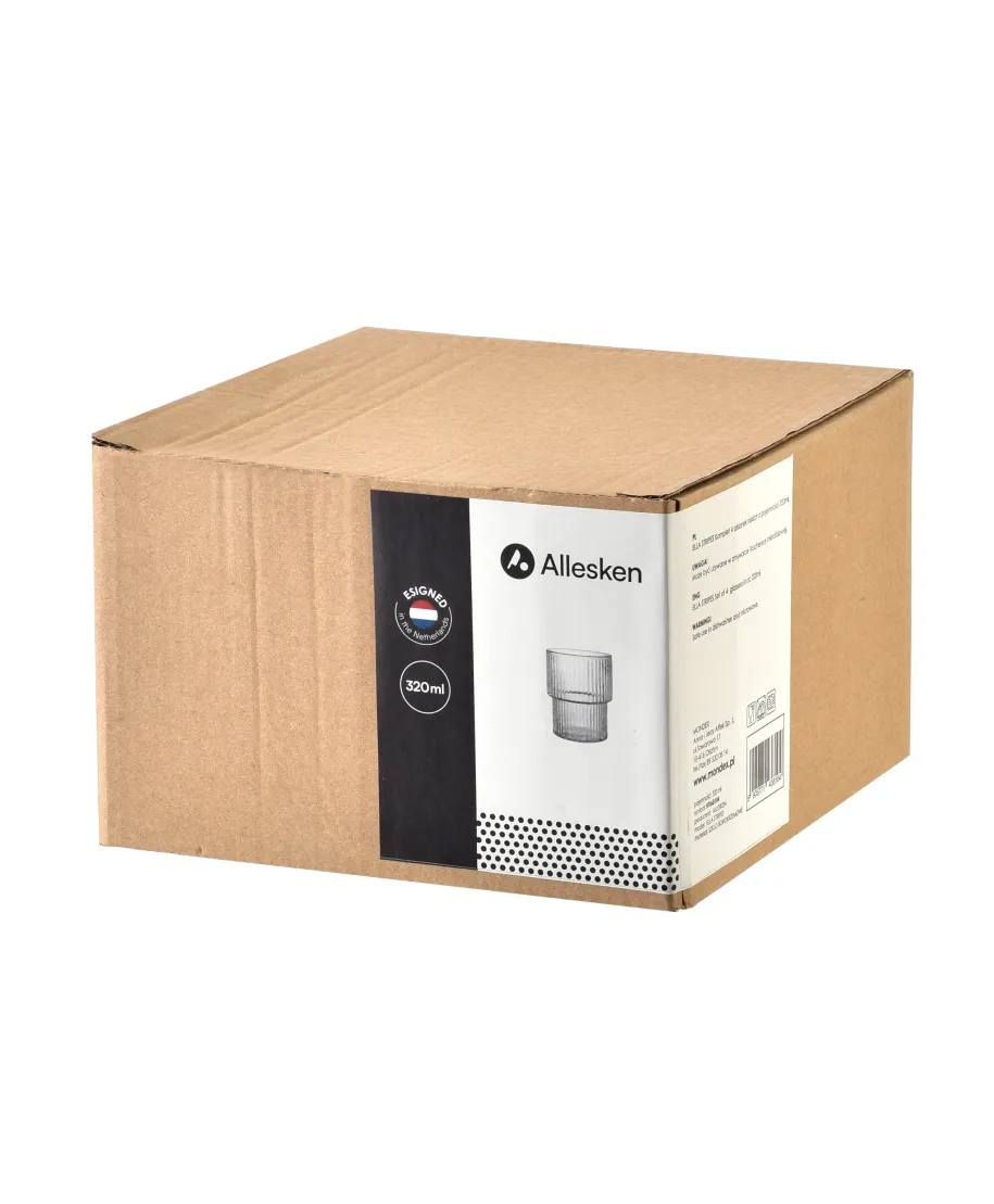 Komplet czterech nietuzinkowych szklanek z kolekcji ELLA STRIPES marki ALLESKEN towyjątkowa propozycja dla osób ceniących niebanalne wzornictwo i wysoką jakość wykonania. Każda ze szklanek zachwyca subtelnym, prążkowanym wykończeniem, które nie tylko przyciąga wzrok, ale także dodaje elegancji każdemu nakryciu stołu. Wykonane ze szkła borokrzemowego . materiału znanego z wyjątkowej odporności na zmiany temperatury oraz uszkodzenia mechaniczne . szklanki są niezwykle trwałe, a przy tym lekkie i wygodne w codziennym użytkowaniu. Idealnie sprawdzą się zarówno do serwowania zimnych, jak i gorących napojów, dodając stylowego akcentu porannej kawie, herbacie czy orzeźwiającym koktajlom. Ich nowoczesna forma i wysmakowana prostota sprawiają, że doskonale wpisują się w wystrój nowoczesnych, jak i klasycznych wnętrz. To nie tylko praktyczny, ale i estetyczny wybór, który podkreśli charakter każdego spotkania przy stole. pojemność: 320ml rozmiar 1 szklanki: 8x7x9,7cm waga 1 szklanki: 130gwaga kompletu: 520g