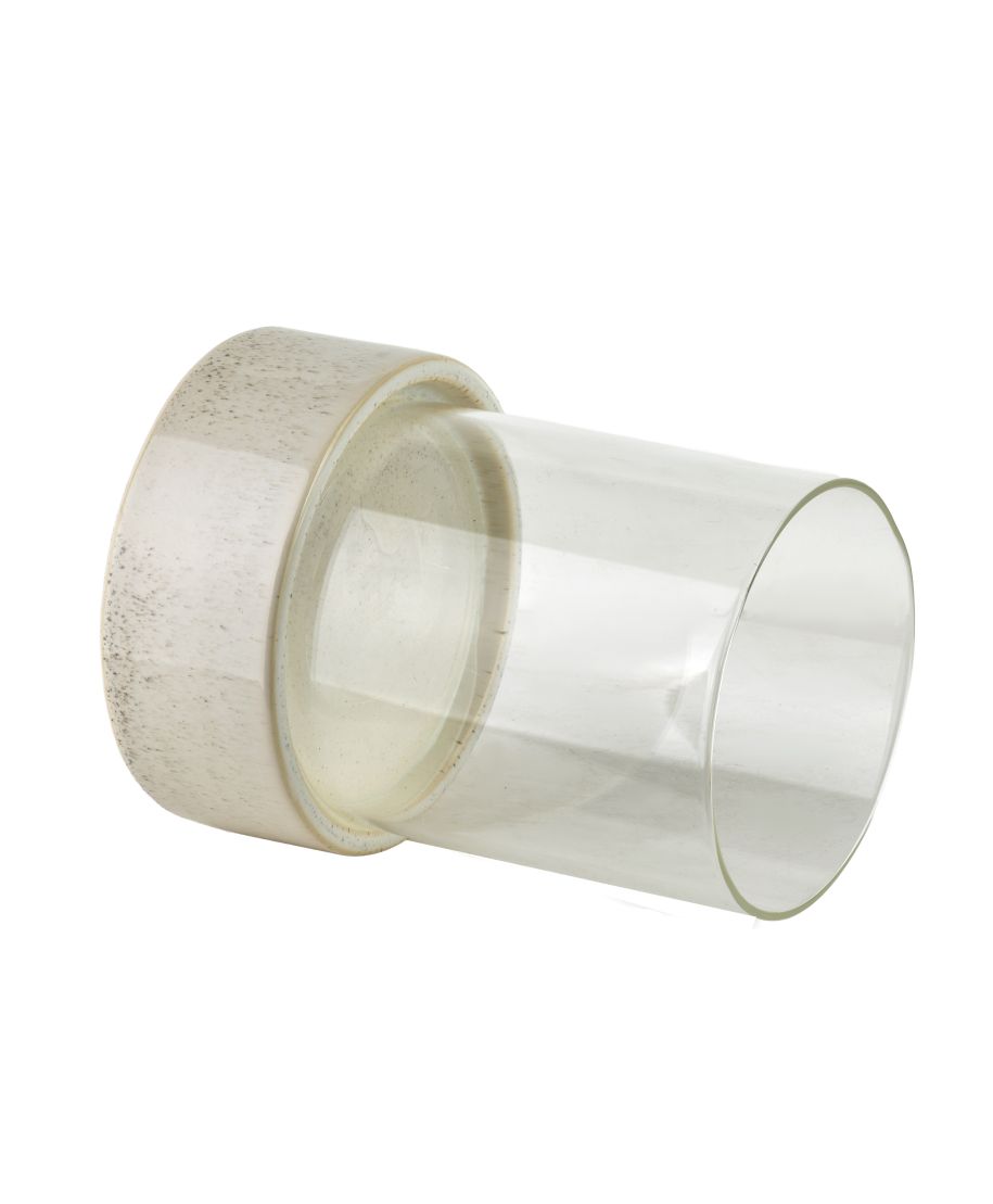 Świecznik EVAM BEIGE to eleganckie dopełnienie kolekcji ceramicznej, które wprowadza do wnętrza harmonię i nastrojowe światło. Konstrukcja łączy w sobie minimalistyczny, szklany klosz z solidną podstawą wykonaną z wysokiej jakości ceramiki. Baza świecznika utrzymana jest w stonowanej, beżowej kolorystyce z charakterystycznym nakrapianiem, co nawiązuje do naturalnego wyglądu kamionki i tworzy spójny zestaw z figurką ptaka z tej samej serii. Przezroczysty cylinder ze szkła pięknie eksponuje płomień świecy, zapewniając jednocześnie ochronę przed przypadkowym zgaszeniem. Dzięki wymiarom 14 x 14 x 14 cm, świecznik jest niezwykle ustawny i doskonale zaprezentuje się na stoliku kawowym, komodzie czy parapecie, podkreślając przytulny charakter wnętrz w stylu japandi, boho lub skandynawskim.Specyfikacja produktu: Wymiary świecznika to 14 x 14 x 14 cm. Został on stworzony z połączenia przezroczystego szkła oraz nakrapianej ceramiki w odcieniu beżowym. Produkt jest częścią kolekcji dekoracji domowych EVAM BEIGE.