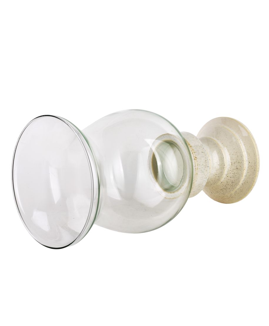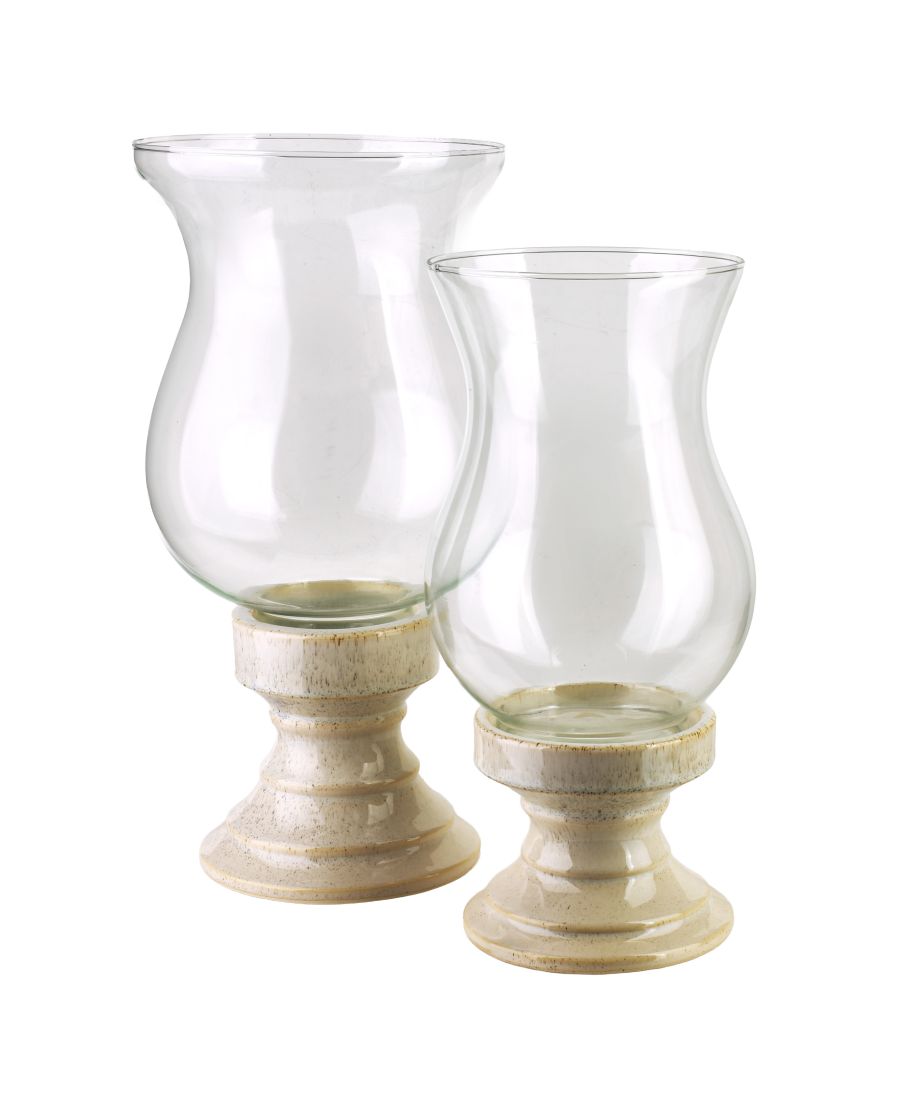 EVAM świecznik dekoracyjny o wymiarach 20,5 20,5 39,5 cm, wykonany z wysokiej jakości materiałów: ceramicznej, szkliwionej podstawy oraz szklanego klosza. Połączenie eleganckiej ceramiki i przezroczystego szkła nadaje świecznikowi nowoczesny i ponadczasowy charakter, pasujący do różnorodnych aranżacji wnętrz.Świecznik jest wszechstronny . idealnie sprawdzi się zarówno jako podstawka pod duże lub małe świece, jak i samodzielna dekoracja, wprowadzająca przytulny, dekoracyjny akcent do salonu, jadalni, holu czy tarasu. Solidna konstrukcja zapewnia stabilność, a gładkie wykończenie ułatwia utrzymanie świecznika w czystości.To elegancki dodatek łączący estetykę z funkcjonalnością, który wprowadza do przestrzeni wyjątkowy styl i subtelny urok.