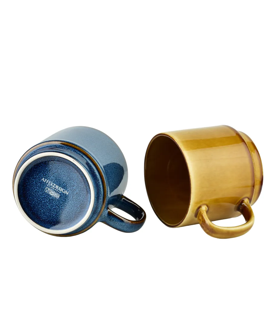 Komplet 4 kubków 400 ml na stojaku z kolekcji EVIE marki AFFEKDESIGN by MONDEX.Komplet skłąda się dwóch sztuk w miodowym kolorze oraz dwóch sztuk w niebieskim.Poj: 400 mlWymiar kubka: 9,8x13,5x9cmcały komplet: 13,5x12x35cm