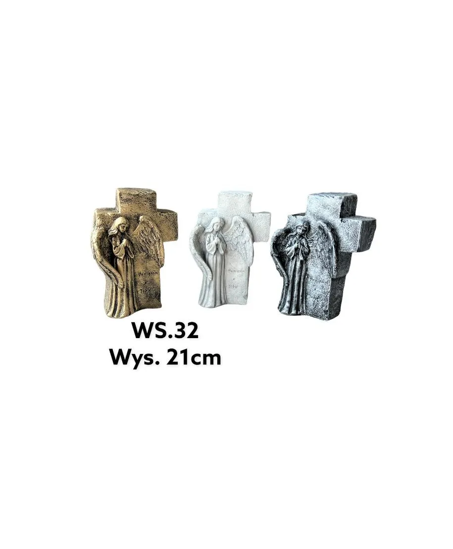Figura krzyż z aniołem 8x14x22cm srebrny