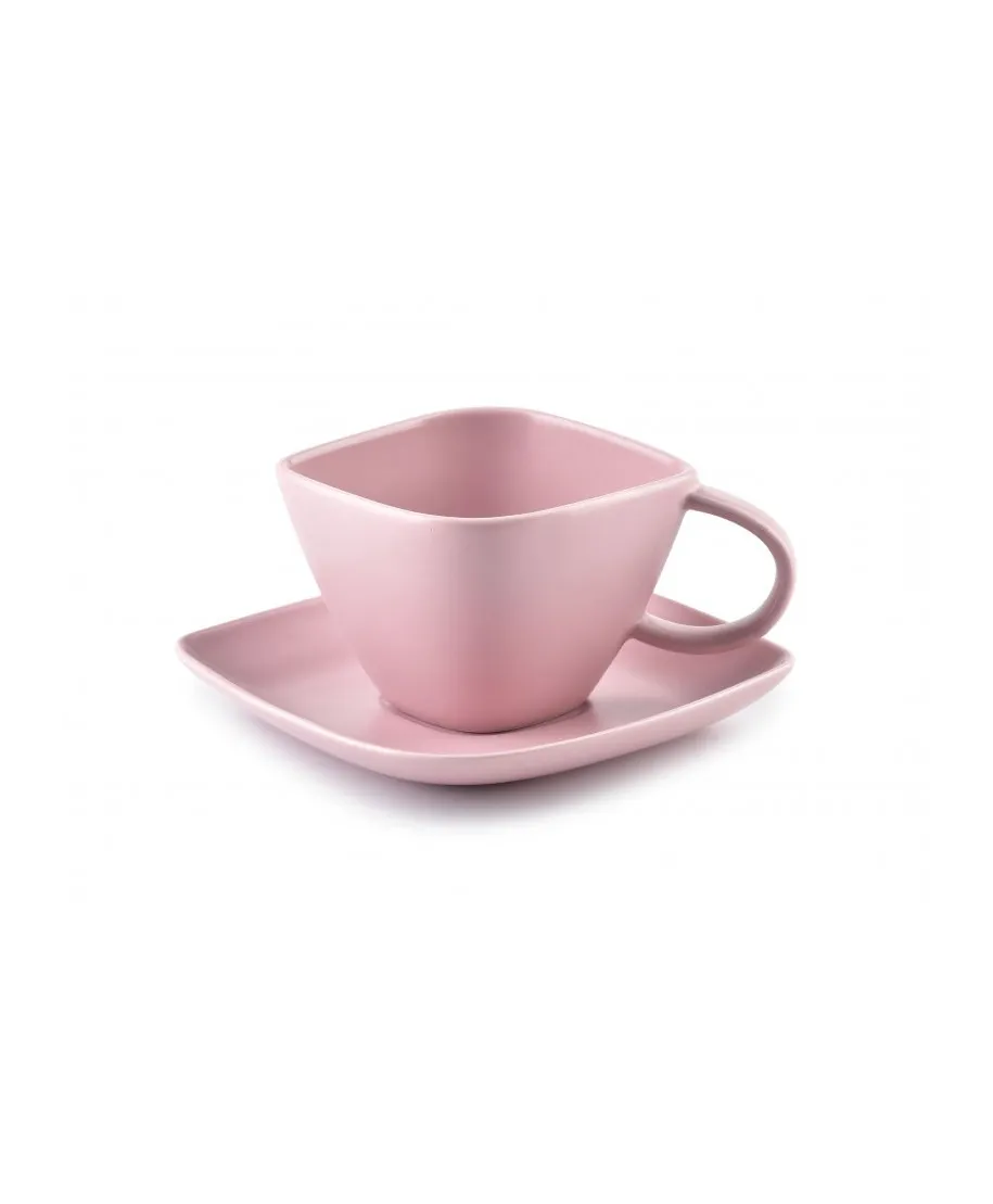 Filiżanki są w kolorze różu i posiadają matowe wykończenie.
