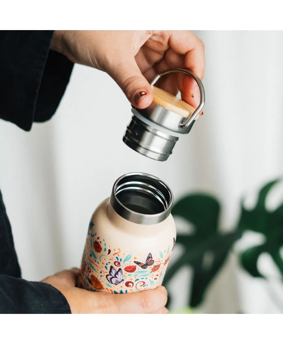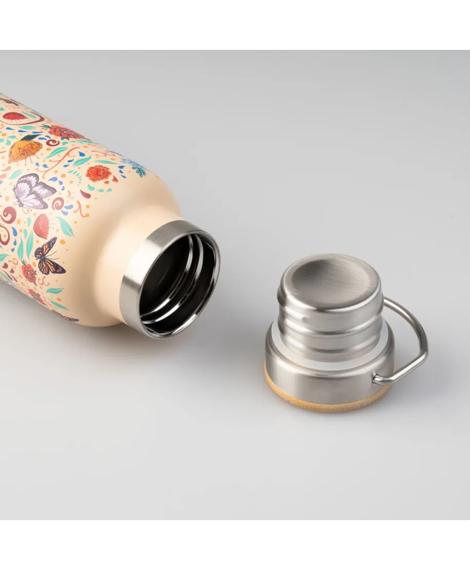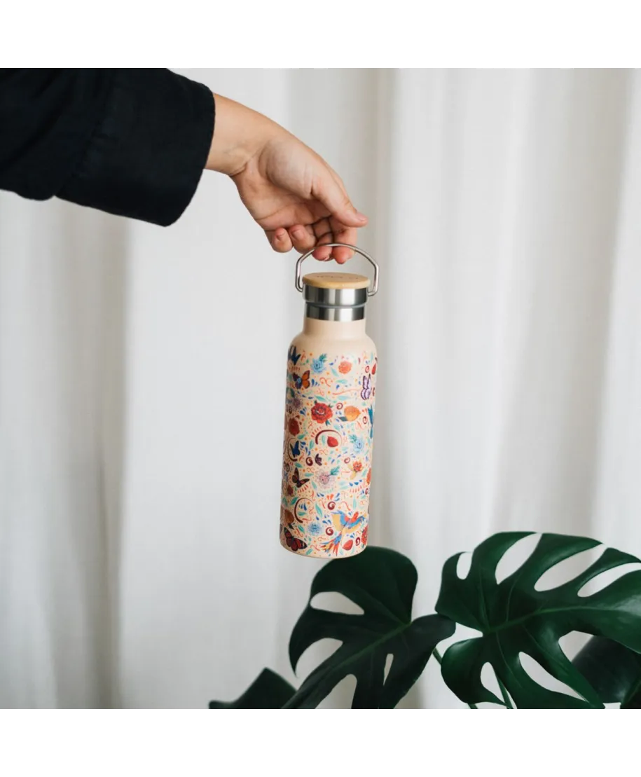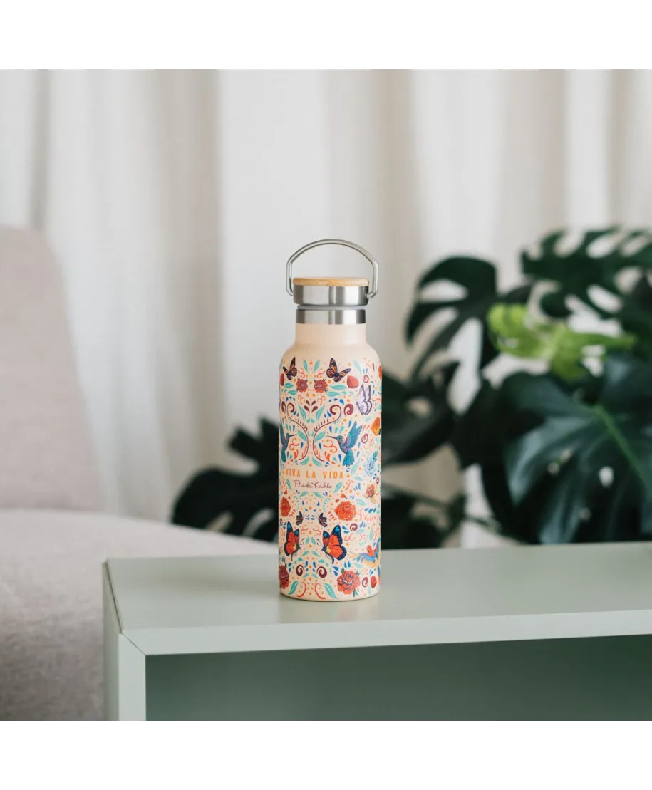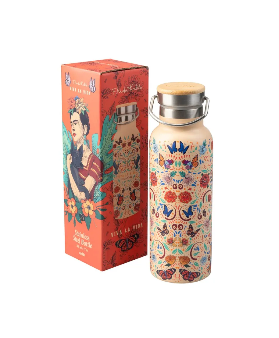 Stalowa butelka Frida Kahlo Viva La Vida Butelka zdobiona kwiatowym wzorem w stylu Fridy Kahlo to doskonały wybór dla fanek sztuki i kolorowych dodatków. Wykonana ze stali nierdzewnej, podwójne ścianki pomagają utrzymać temperaturę napoju. Nietoksyczna i wolna od BPA bezpieczna dla użytkownika i środowiska. Produkt posiada oryginalną licencję producenta. Specyfikacja: 7x23 cm, pojemność 500 ml