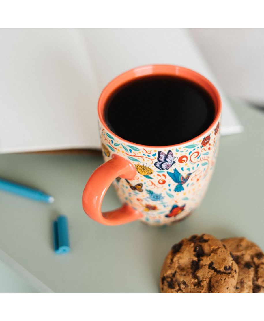 Frida Kahlo Viva La Vida - kubek z wypełnieniem Numer katalogowy: TAZP19 Producent: Grupo Erik Wymiary/pojemność: 10,5 × 8,5 × 6 cm/350 ml Kubek z wypełnieniem Frida Kahlo Viva La Vida kubek ceramiczny z pokrywką i słomką, ozdobiony kolorową grafiką. Wypełnienie - słodkie drobne cukierki lub dekoracja wewnątrz kubka dodaje uroku. Materiał ceramiczny, dekoracja trwała. Kubek przystosowany do napojów gorących i zimnych; dekoracje wymaga mycia ręcznego. Szczegóły techniczne Zestaw: kubek + pokrywka + słomka Motyw: Frida Kahlo Viva La Vida Pojemność: 350 ml Oryginalny produkt na oficjalnej licencji Frida Kahlo / Grupo Erik.