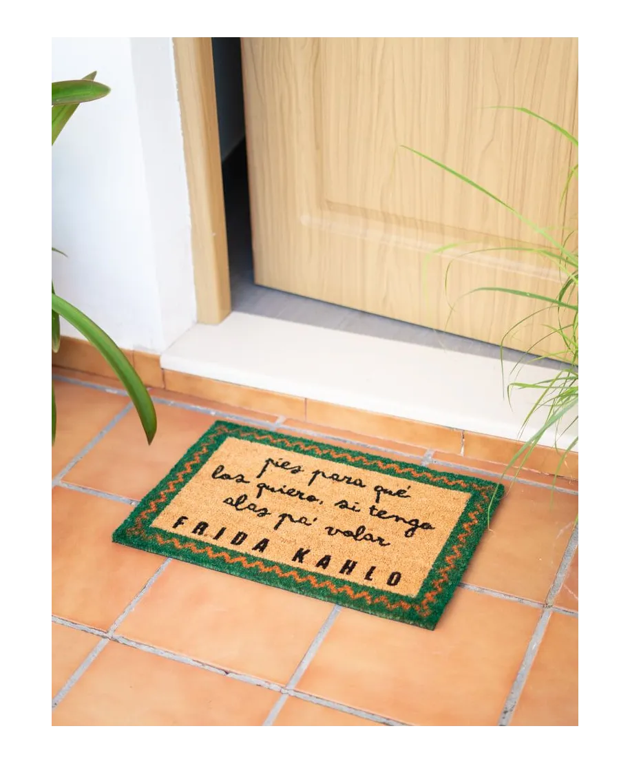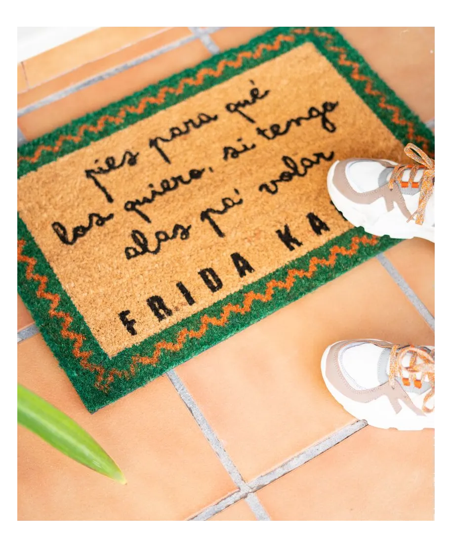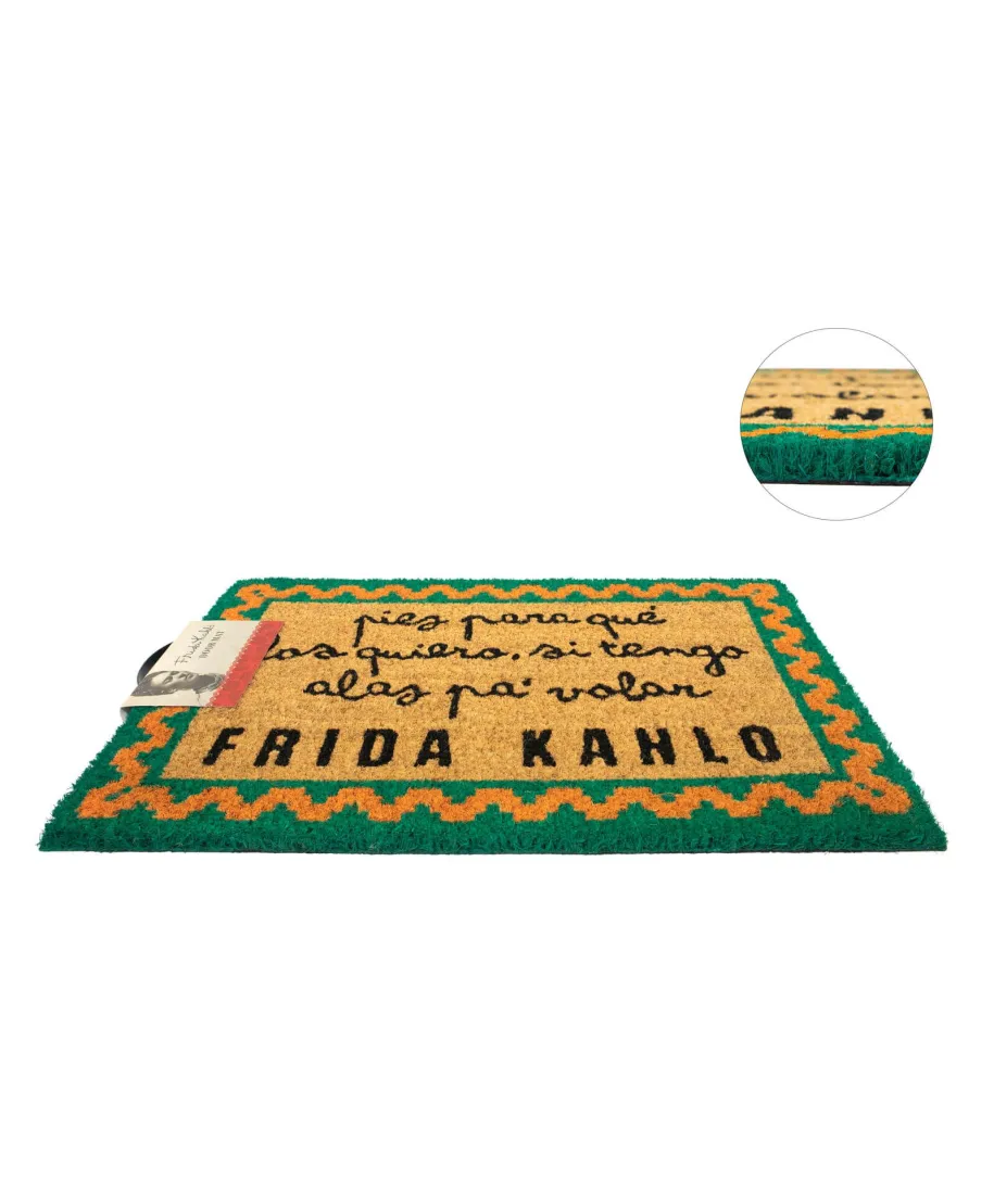 Wycieraczka Frida Kahlo Z naszą wycieraczką zachowasz czystość w domu i zaskoczysz znajomych już przy wejściu. Wycieraczka z oryginalnym motywem to nie tylko przydatny gadżet, ale też świetna ozdoba mieszkania. Wykonana jestz naturalnego włosia kokosowego. Została podklejona gumą aby zapobiec poślizgowi. Jest oryginalna, to oficjalne, licencjonowane wydanie. Rozmiar wycieraczki: 40x60 cm. Wysokość: 1,5 cm.