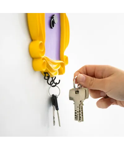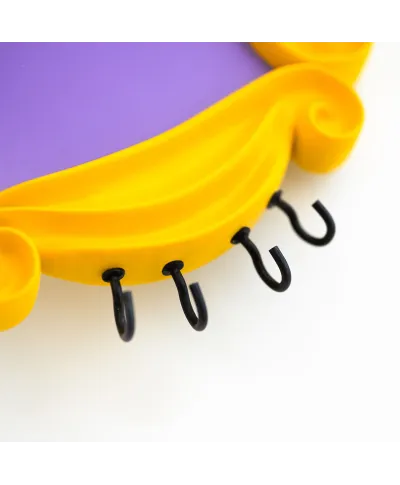 Friends - wieszak na klucze Stylowy wieszak na klucze inspirowany kultowym serialem Friends. Idealny do uporządkowania kluczy, a jednocześnie dodający charakteru każdemu wnętrzu. Wykonany z wytrzymałej żywicy, z 4 metalowymi wieszakami, zapewnia wygodę i solidność. Łatwy montaż dzięki dołączonym elementom, w tym haczykowi, śrubie i zatyczce. Szczegóły techniczne: Wymiary: 15 x 18 x 1,5 cm Materiał: Żywica i metal Liczba wieszaków: 4 Elementy montażowe: Haczyk, śruba, zatyczka Licencjonowany produkt Oryginalny produkt na licencji Friends, doskonały jako prezent dla fanów serialu.