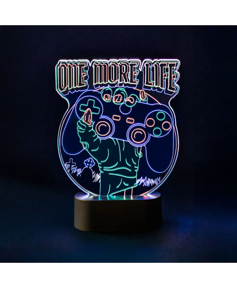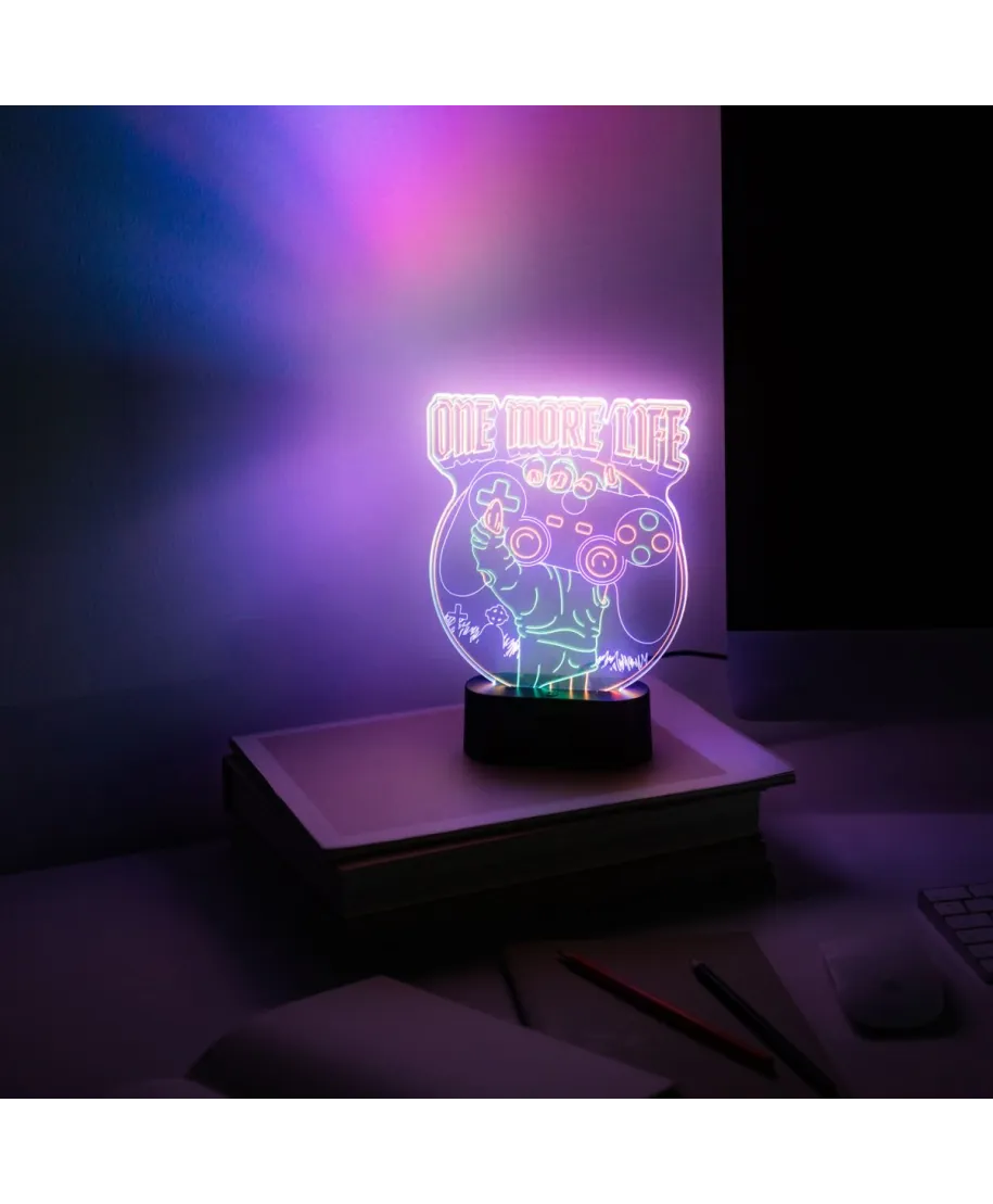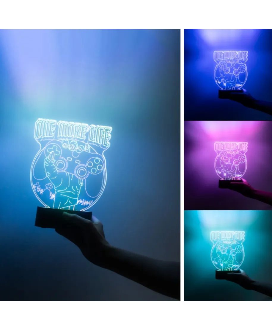 Gameration One More Life - lampa Lampa "Gameration One More Life" to idealna dekoracja dla fanów gier, którzy chcą wprowadzić gamingowy styl do swojego wnętrza. Wykonana z trwałych materiałów ABS i metakrylanu, oferuje różne tryby oświetlenia, które można zmieniać jednym przyciskiem na górze podstawy. Lampa może być zasilana za pomocą 3 baterii AAA (brak w zestawie) lub dołączonego kabla USB typu C, co zwiększa jej funkcjonalność. Wymiary: 17 x 20 x 5,5 cm, dzięki czemu stanowi kompaktowy i stylowy dodatek do pokoju każdego gracza. Szczegóły techniczne Materiał: ABS i metakrylan Wymiary: 17 x 20 x 5,5 cm Zasilanie: 3x AAA (brak w zestawie) lub USB typu C (w zestawie) Licencjonowany produkt Oryginalny produkt dla graczy, idealny na prezent lub jako uzupełnienie kolekcji gamingowej.