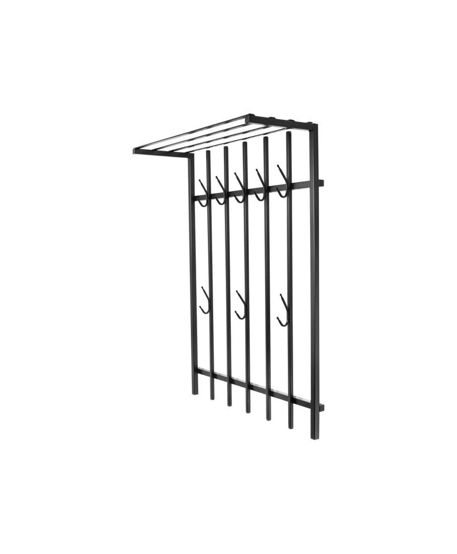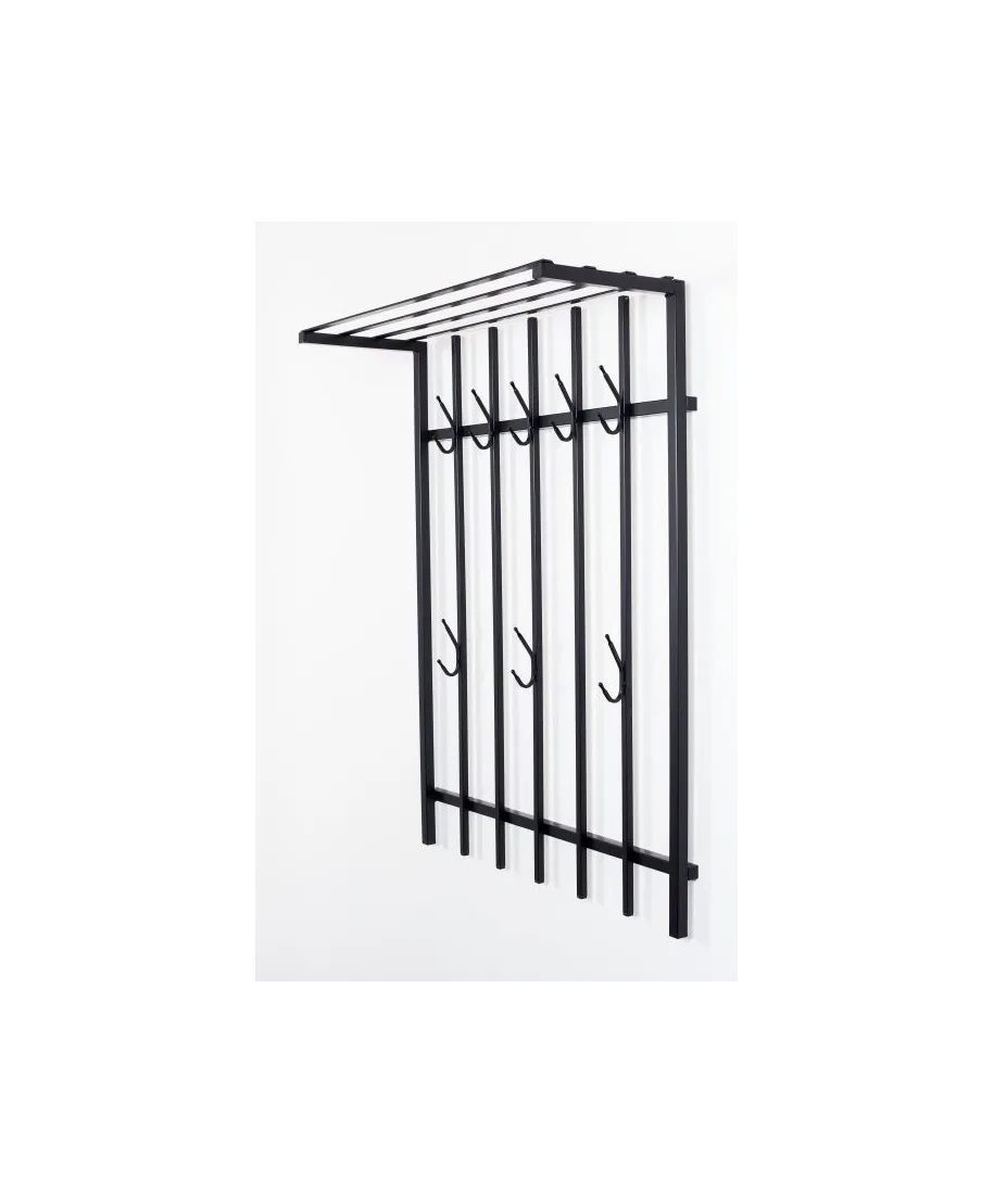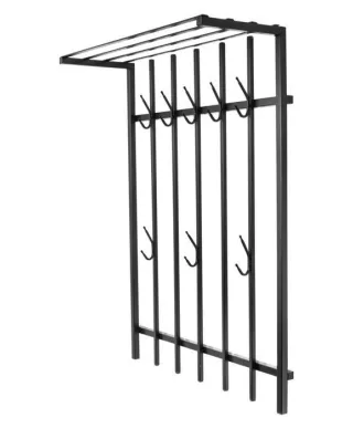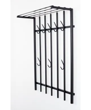 Posiada 8 haczyków do powieszenia odzieży wierzchniej oraz półkę na której można położyć na przykład czapki.