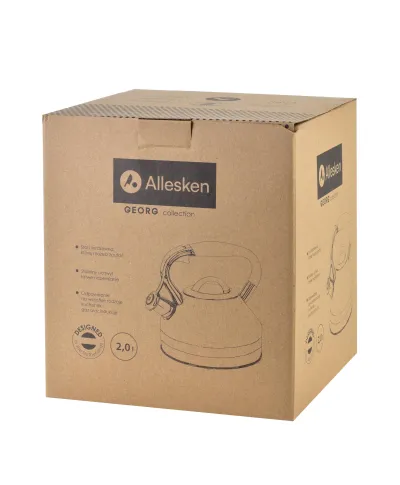 Przedstawiamy czajnik GEORG marki ALLESKEN o pojemności 2,0 litra . doskonały wybór dla każdej kuchni. Czajnik GEORG został wykonany z wysokiej jakości stali nierdzewnej, co zapewnia jego wytrzymałość i elegancki wygląd. Dzięki nowoczesnemu designowi i praktycznym funkcjom, czajnik GEORG staje się niezastąpionym elementem każdej kuchni. Główne cechy produktu:Materiał: wysokiej jakości stal nierdzewna, odporna na rdzewienie i korozję. Pojemność: 2,0 litra, idealna dla większych rodzin i gości. Ergonomiczny uchwyt: zapewnia wygodne i bezpieczne użytkowanie. Gwizdek: informuje o zagotowaniu wody, zapewniając wygodę i bezpieczeństwo. Stylowy design: nowoczesny wygląd, który doskonale komponuje się z wystrojem każdej kuchni.Dlaczego warto wybrać czajnik GEORG? Wytrzymałość: solidna konstrukcja ze stali nierdzewnej gwarantuje długotrwałe użytkowanie. Łatwość czyszczenia: stal nierdzewna jest łatwa do utrzymania w czystości, co pozwala na długotrwałe użytkowanie bez problemów. Bezpieczeństwo: stal nierdzewna nie reaguje z wodą, zapewniając zdrowe i bezpieczne użytkowanie. Wybierz czajnik GEORG 2,0L, aby cieszyć się niezawodnością, elegancją i funkcjonalnością w swojej kuchni każdego dnia. Średnica dna: 19cm Wysokość z rączką: 22cm