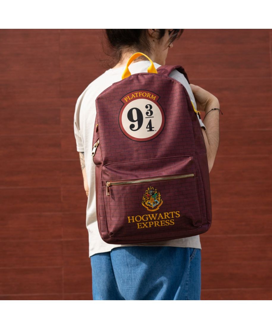 Harry Potter Platform 9 3/4 - plecak szkolny Numer katalogowy: MARE0381 Producent: Erik Plecak szkolny z motywem peronu 9 i 3/4 z serii Harry Potter. Wyposażony w komorę główną, dwie kieszenie zewnętrzne oraz wyściełaną kieszeń wewnętrzną. Zapinany na suwaki od góry i z przodu. Posiada regulowane paski na ramię, uchwyt oraz rzepy do mocowania na wózku. Szczegóły techniczne Materiał: poliester Wysokość: 48 cm Szerokość: 36 cm Głębokość: około 13 cm Komory: 1 główna, 2 zewnętrzne Oryginalny produkt na oficjalnej licencji Harry Potter, wyprodukowany przez Erik.