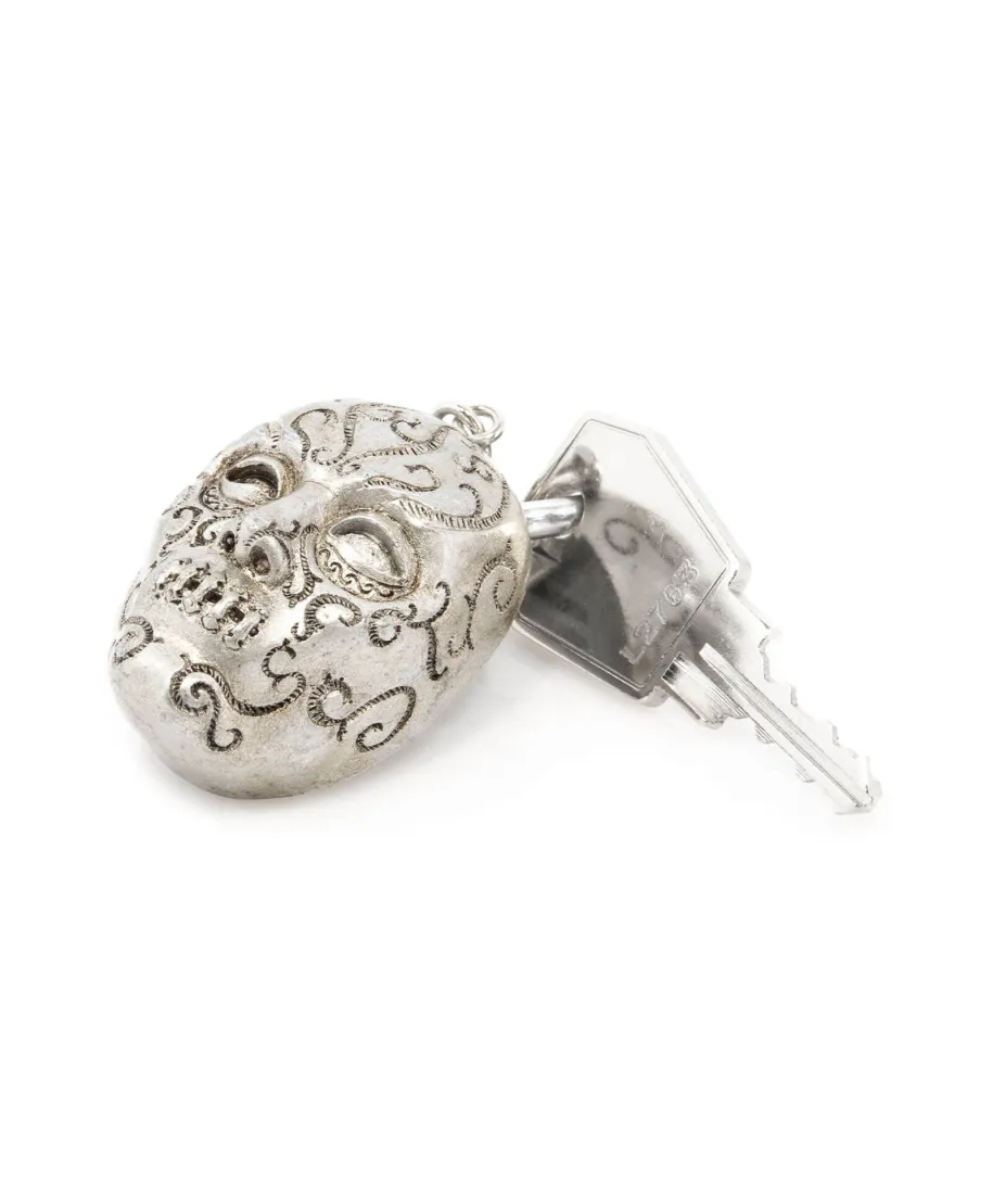 Metalowy brelok 3D Harry Potter Death Eater Mask Metalowy brelokdo kluczy z popularnym motywem. Kompletny brelok składa się zmetalowegooczka oraz zawieszki 3D. Brelok to idealny upominek w konkursach i zabawach. To oryginalnyilicencjonowanygadżet! Przedstawiony brelok ma rozmiar ok. 3x4,5cm.