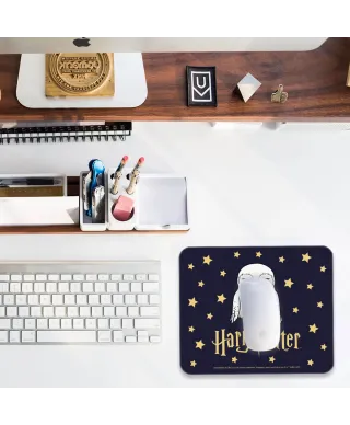 Podkładka pod myszkę "Harry Potter: Hedwiga" Podkreśl swoją pasję do świata czarodziejów z naszą elegancką podkładką pod myszkę, przedstawiającą Hedwigę, lojalną sowią towarzyszkę Harry'ego Pottera. Granatowe tło doskonale komponuje się z bajkowym rysunkiem Hedwigi, otoczonej złotymi gwiazdkami, dodającym magii każdej chwili spędzonej przy komputerze. Wykonana z neoprenu, antypoślizgowa podkładka nie tylko wygląda atrakcyjnie, ale również zwiększa komfort użytkowania myszki, zapewniając stabilność i precyzję. Idealny dodatek do każdego biurka fana Harry'ego Pottera! Specyfikacje produktu: Antypoślizgowa: tak Materiał: neopren Wzmocnione krawędzie: nie Wymiar podkładki: 23x19 cm Wymiar opakowania: 30x22,5 cm Oficjalne wydanie Produkt posiada licencję producenta. Wybierając ten produkt, masz pewność autentyczności i jakości, wspierając jednocześnie twoich ulubionych artystów i twórców.
