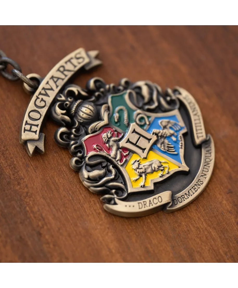 Harry Potter Hogwart - brelok metalowy Elegancki brelok z herbem Hogwartu, wykonany z trwałego metalu. Idealny dodatek do kluczy, plecaka czy torby, który podkreśla fascynację światem magii i przygód w Hogwarcie. Szczegóły techniczne Wymiary: ok. 6 x 9 cm Materiał: metal Oficjalna licencja: Harry Potter Licencjonowany produkt Oryginalny, licencjonowany produkt doskonały na prezent dla każdego fana Harry'ego Pottera.