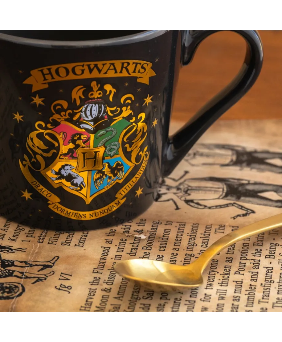 Harry Potter Hogwart - kubek Stylowy kubek z wizerunkiem Hogwartu, idealny dla każdego czarodzieja i mugola. Dzięki temu produktowi poczujesz magię podczas każdej chwili z ulubionym napojem. Kubek doskonale sprawdzi się jako ozdoba lub praktyczny element codziennego użytku. Szczegóły techniczne Pojemność: 444 ml Materiał: Ceramika Wymiary: wysokość 9,2 cm, średnica górna 10 cm, średnica dolna 8 cm Nie nadaje się do zmywarki i mikrofalówki Oryginalny produkt licencjonowany przez Warner Bros, idealny jako prezent lub do kolekcji.