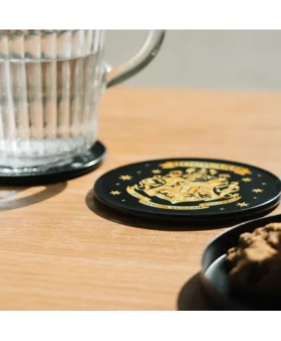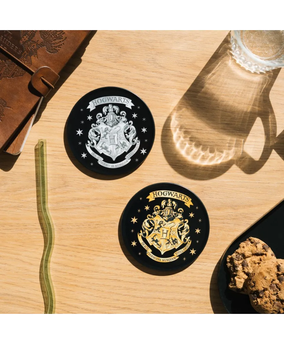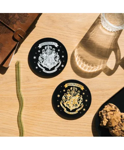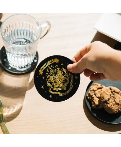 Harry Potter Hogwarts - zestaw 2 podstawek pod kubek Zestaw 2 podstawek z herbem Hogwartu to idealny produkt dla fanów Harry'ego Pottera. Wykonane z mieszanki drewna, łączą funkcjonalność z wyjątkowym designem, idealnym do codziennego użytku i na prezent. Specyfikacje: Ilość w zestawie: 2 Materiał: mieszanka drewna Wymiary: 9 x 9 cm Licencjonowany produkt Oficjalny gadżet Harry Potter. Świetny dodatek do oferty prezentowej lub domowej kolekcji.
