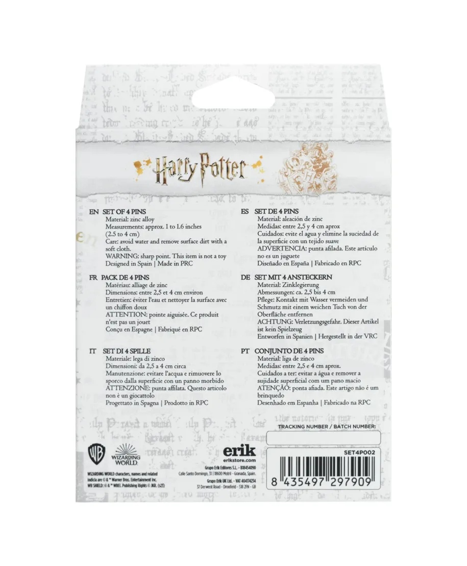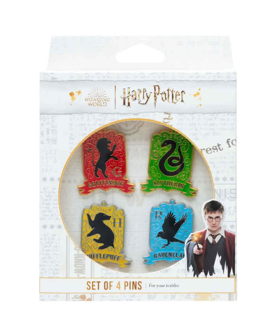 Harry Potter Hogwarts Houses - zestaw 4 przypinek Przenieś się do magicznego świata Harry'ego Pottera z zestawem 4 przypinek Hogwarts Houses. Każda przypinka przedstawia herb domów Hogwartu: Gryffindor, Slytherin, Ravenclaw i Hufflepuff. Wykonane ze stopu cynku i emaliowane, są trwałe i estetyczne. Przypinki mają wymiary od 2,5 do 4 cm, idealne do ozdabiania ubrań, plecaków i toreb. Zestaw zapakowany w eleganckie pudełko ochronne z okienkiem, gotowy do wręczenia jako prezent. Oryginalny gadżet z licencją producenta. Wymiary: od 2,5 do 4 cm.