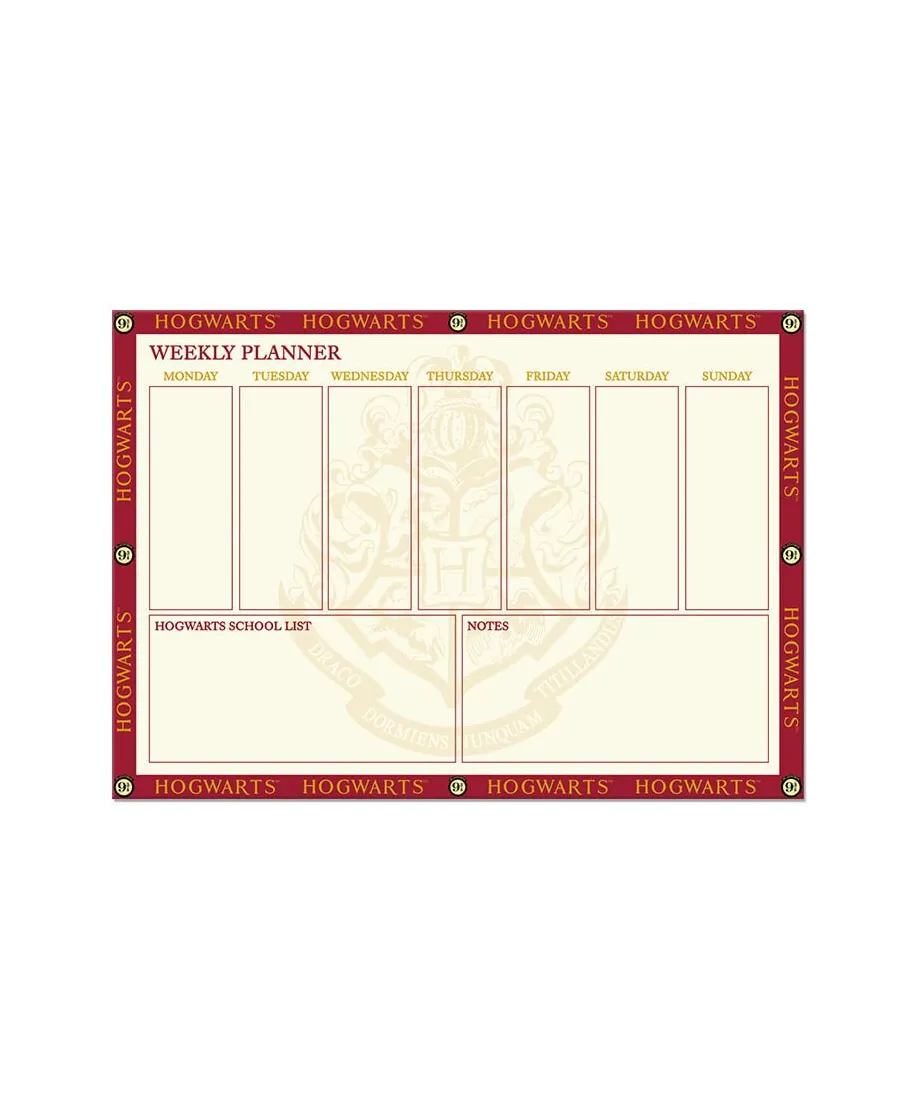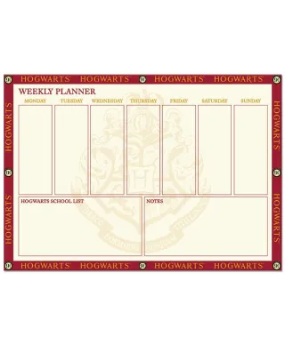 Planer tygodniowy A4 "Harry Potter: Hogwarts" Przedstawiamy planer tygodniowy inspirowany światem "Harry'ego Pottera". Z czerwoną obramówką i napisem "Hogwarts 9 3/4", a także centralnie umieszczonym logo Hogwartu, ten planer jest prawdziwą gratką dla fanów serii. Planery są idealnym dodatkiem dla osób, które uwielbiają uporządkowany styl życia. Gdy wszystko zaplanujesz, łatwiej jest wypełniać zaplanowane zadania i nie zapomnieć o nich. Z tym planerem fani "Harry'ego Pottera" mogą codziennie czuć magię Hogwartu. Specyfikacje produktu: Format: A4 Typ: tygodniowy Wymiary: 29,7x21 cm Orientacja: pozioma Oficjalne wydanie Zakupiony produkt posiada oficjalną licencję producenta. Wybierając ten planer, masz pewność co do jego oryginalności i jakości. Dzięki temu wspierasz również ulubionych artystów, twórców i marki.