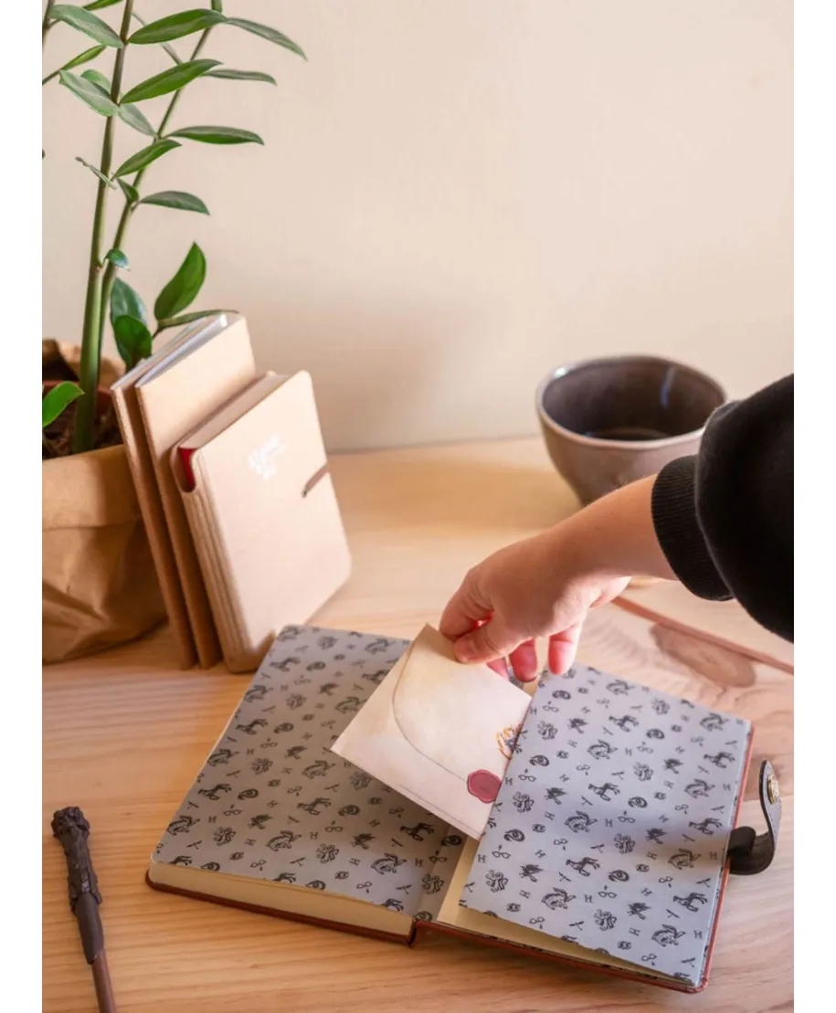 Harry Potter Notes z Długopisem - Notatnik inspirowany światem Harry'ego Pottera z dołączonym długopisem Poznaj notatnik Harry Potter Notes z Długopisem, który przeniesie Cię do czarodziejskiego świata Harry'ego Pottera. Ten magiczny notatnik jest inspirowany serią książek i filmów o Harrym Potterze i posiada unikalne motywy związane z Hogwartem i czarodziejskimi przedmiotami. Dodatkowo, w zestawie znajduje się długopis, który umożliwi Ci zapisywanie swoich myśli i odkrywanie tajemnic tego wspaniałego świata. Format: A5 Oprawa: skórzana Ilość stron: 240 Rodzaj: w kropki Wykończenie: szyty Zamknięcie: zapięcie Oficjalne wydanie Notatnik Harry Potter posiada licencję producenta. Kupując w naszym sklepie, masz 100% pewności, że otrzymasz oryginalny produkt.