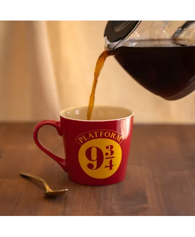 Harry Potter Peron 9 3/4 - kubek Unikalny kubek inspirowany magicznym światem Harry'ego Pottera, ozdobiony grafiką Peronu 9 3/4. Idealny dla fanów, którzy chcą przenieść odrobinę Hogwartu do codziennego życia. Stylowy design sprawia, że jest doskonałym dodatkiem do kolekcji każdego czarodzieja! Szczegóły techniczne Pojemność: 444 ml Materiał: Ceramika Wymiary: wysokość 9,2 cm, średnica górna 10 cm, średnica dolna 8 cm Nie nadaje się do zmywarki i mikrofalówki Oryginalny, licencjonowany produkt Harry Potter, idealny na prezent dla każdego fana serii.