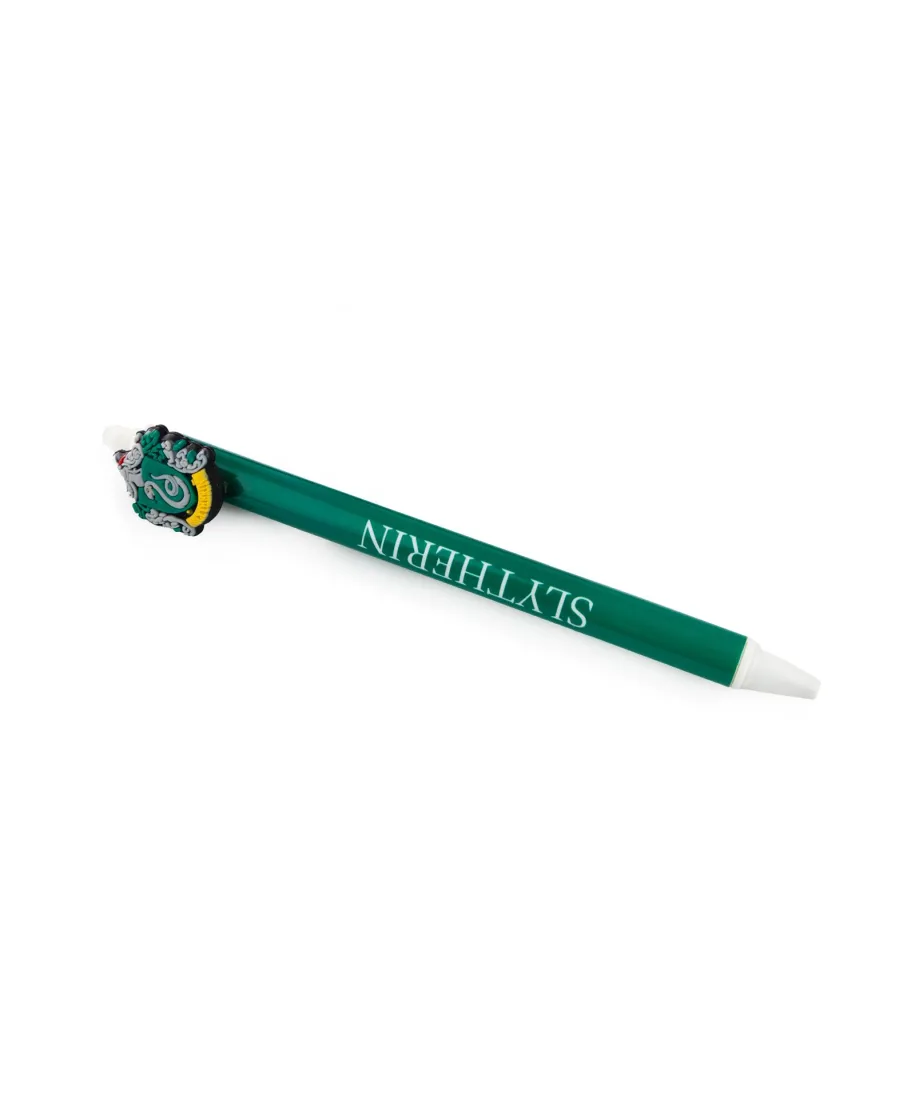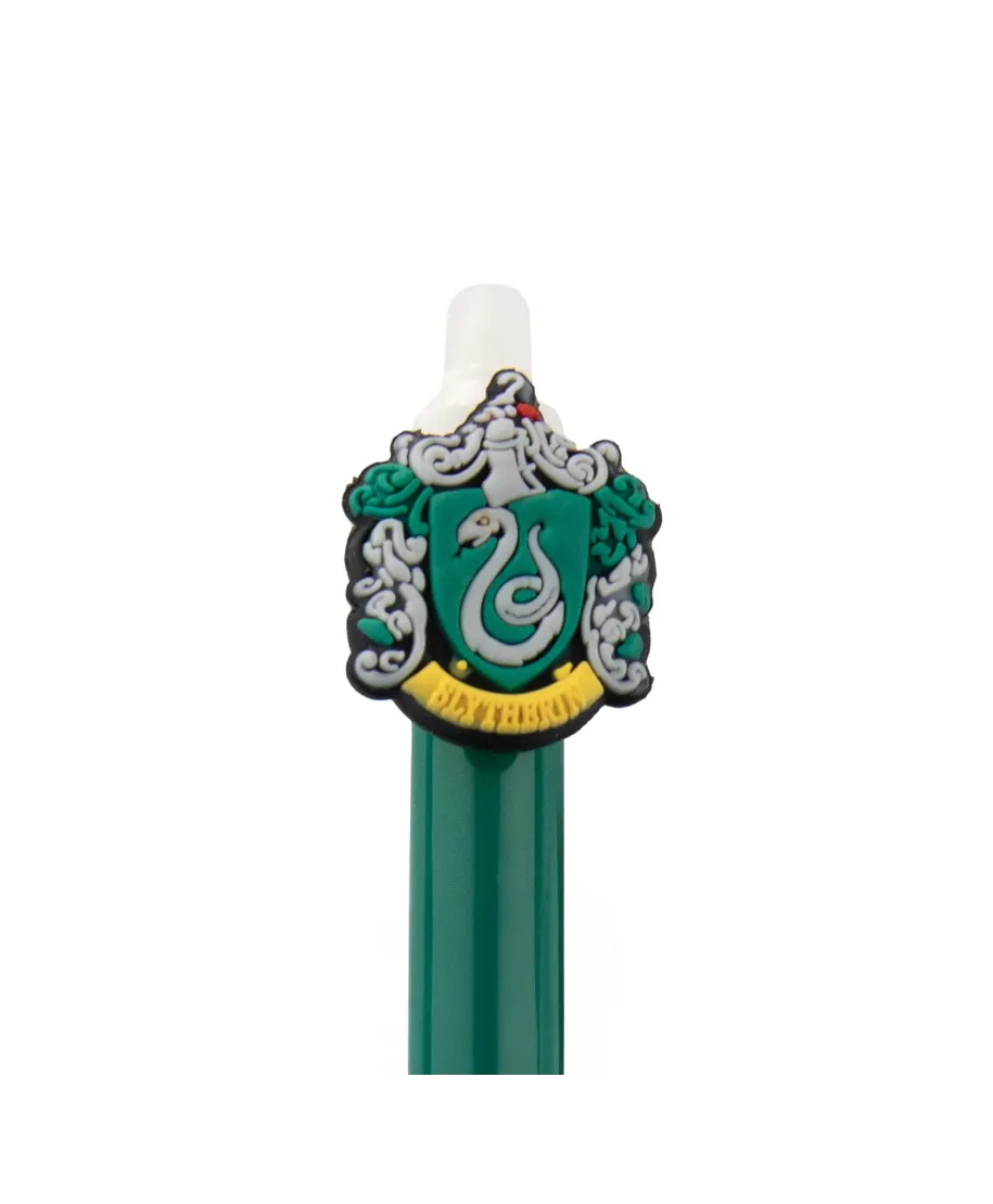 Długopis zmywalny Harry Potter Slytherin Zielony długopis z herbem Slytherinu niebieski wkład, klikany mechanizm, gumka do ścierania. Stylowy i funkcjonalny gadżet dla fanów Harry'ego Pottera. Szczegóły techniczne Kolor tuszu: niebieski Mechanizm: klik Końcówka: gumka Motyw: Slytherin Oryginalny produkt licencjonowany Harry Potter.