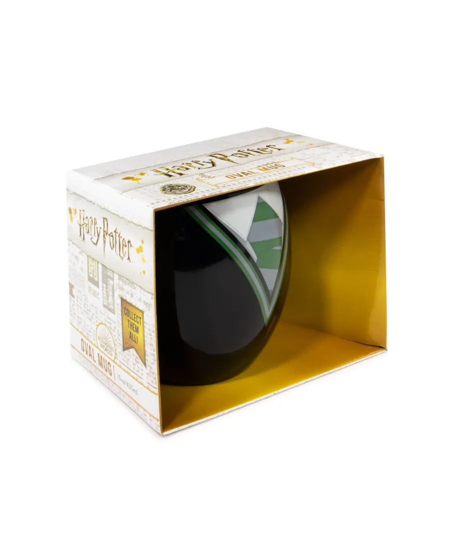 Kubek Harry Potter: Slytherin Charyzma, ambicja, a może odrobina mroku? Slytherin to dom dla tych, którzy nie boją się iść za swoimi pragnieniami. Teraz możesz cieszyć się tym duchem Slytherinu przy każdej filiżance herbaty czy kawy. Na kubku dominuje motyw związany z uczniami szkoły - mundurek Hogwartu w koloras Slytherinu. Na jego odwrocie znajduje się herb tego domu. W każdym detalu czuć dumę i siłę, które cechują członków tego domu. Pojemność: 425 ml Materiał: Wysokiej jakości ceramika Można myć w zmywarce: Tak Można używać w kuchence mikrofalowej: Tak Dzięki oficjalnej licencji Warner Bros, ten kubek stanie się klejnotem w kolekcji każdego fana świata Harry'ego Pottera. Odkrywaj ambicję Slytherinu przy każdym łyku!