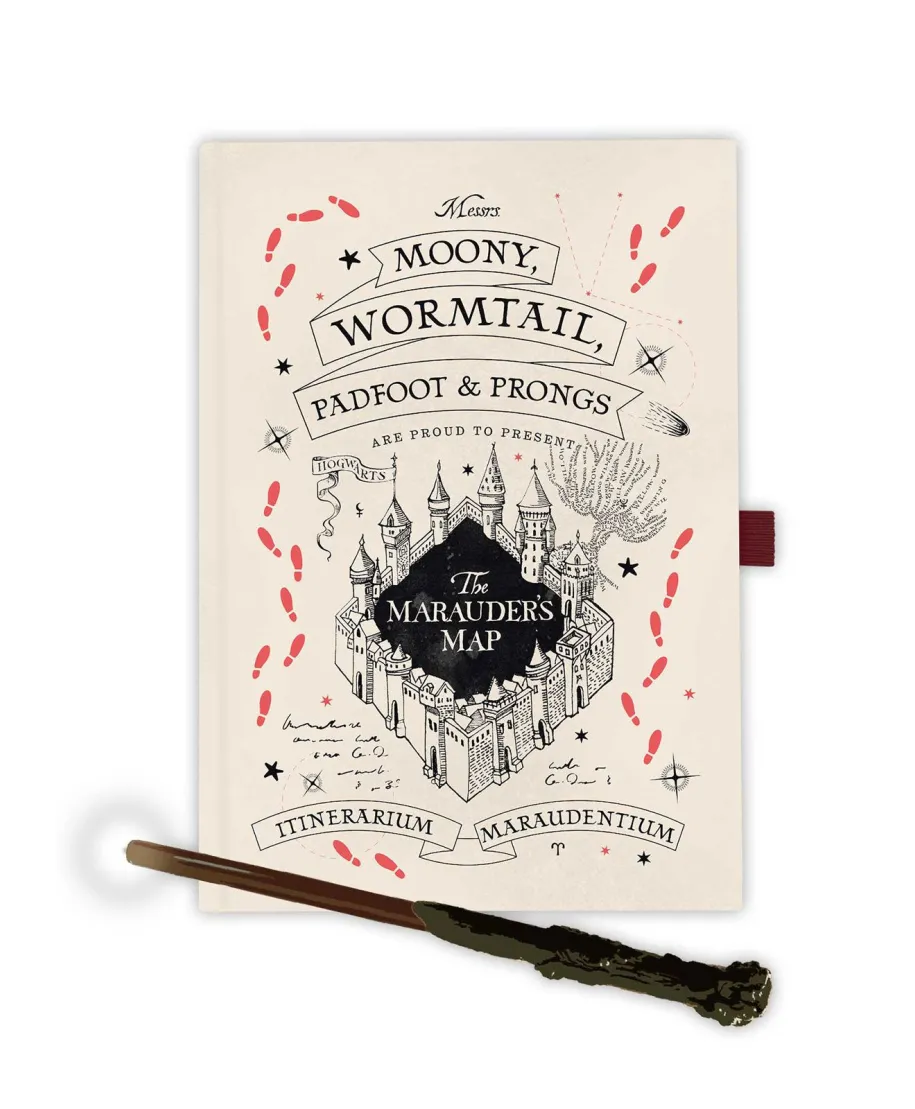 Harry Potter The Marauder's Map - notes z długopisem Notatnik w twardej oprawie z nadrukiem zmiennym optycznie oraz unikalny długopis-różdżka ze światłem UV i niewidzialnym atramentem. Idealny dla fanów magii i przygód. Szczegóły techniczne: Format: A5 Rodzaj papieru: gładki Ilość kartek: 96 Ilość stron: 192 Gramatura papieru: 100 g/m Długopis: różdżka z niewidzialnym atramentem i światłem UV Baterie: 3x AG3 1,5V (w zestawie) Licencjonowany produkt Oryginalny produkt Harry Potter, doskonały jako prezent lub kolekcjonerski gadżet. 100% autentyczności gwarantowane.