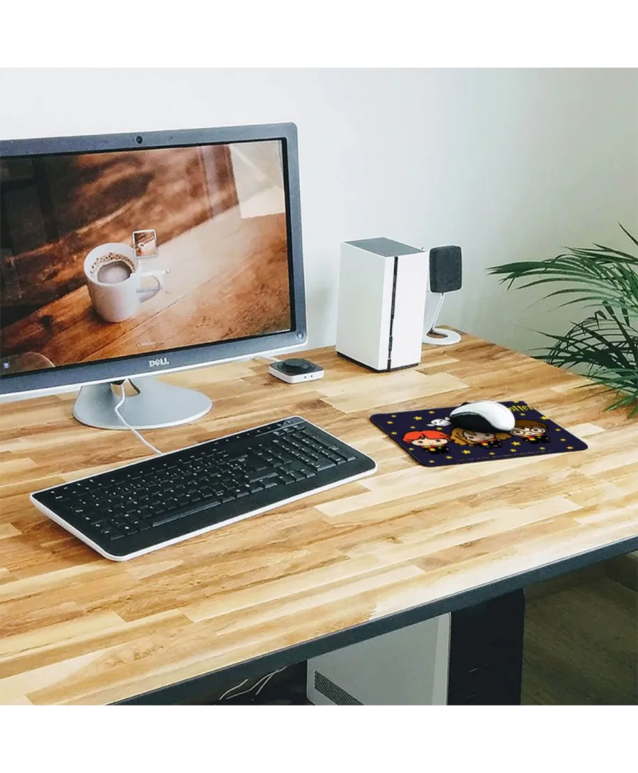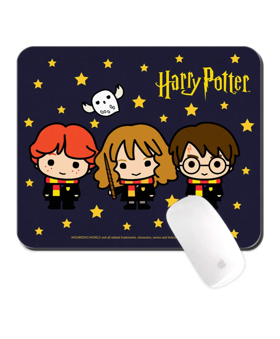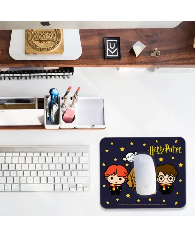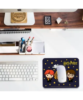 Podkładka pod myszkę "Harry Potter: Trio" Podkładka "Harry Potter: Trio" to połączenie magii i przyjaźni, które definiują serię o Harrym Potterze. Chibi wersje Harry'ego, Hermiony i Rona zdobią granatowe tło podkładki, otoczone złotymi gwiazdkami. Nad trójką dumnie unosi się Hedwiga, przypominając o lojalności i przygodach. Wykonana z neoprenu, podkładka jest nie tylko stylowa, ale także funkcjonalna, gwarantując antypoślizgowość i długotrwałe użytkowanie. Jest to doskonały dodatek dla każdego fana serii, który chce dodać trochę magii do swojego miejsca pracy czy nauki. Specyfikacje produktu: Antypoślizgowa: tak Materiał: neopren Wzmocnione krawędzie: nie Wymiar podkładki: 23x19 cm Wymiar opakowania: 30x22,5 cm Oficjalne wydanie Ta podkładka jest oficjalnie licencjonowanym produktem z serii Harry Potter, gwarantując wysoką jakość i autentyczność designu.