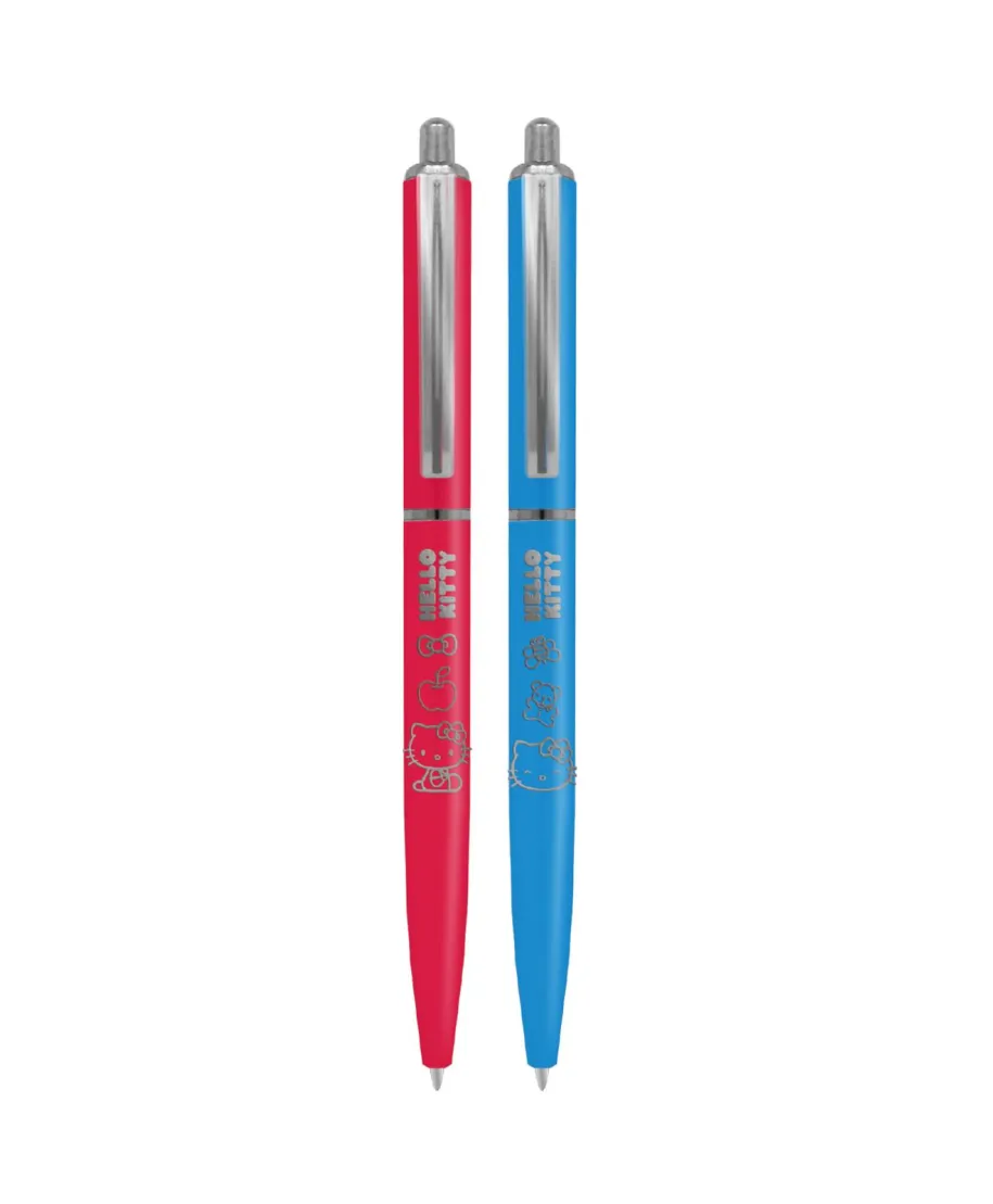 Zestaw 2 długopisów Hello Kitty Icons Metaliczne długopisy z grafikami Hello Kitty czerwony i niebieski, Wysuwany mechanizm, elegancki design, Szczegóły techniczne Ilość: 2 szt, Motyw: Hello Kitty Icons Mechanizm: Klik Materiał: Plastik, metal Licencjonowany produkt oficjalny gadżet Sanrio,