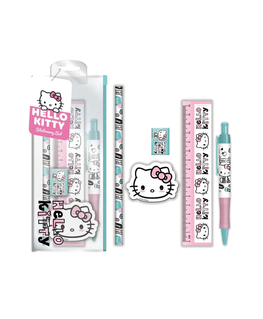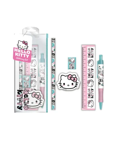 Hello Kitty Insta Cuteness - zestaw przyborów szkolnych Zestaw przyborów szkolnych z Hello Kitty to praktyczny i uroczy komplet na co dzień. Zawiera niezbędne akcesoria i wyróżnia się charakterystycznym designem dla fanów marki Sanrio. Szczegóły techniczne: Długopis Ołówek Linijka Temperówka Gumka do mazania Oryginalny, licencjonowany produkt idealny do szkoły lub jako prezent.
