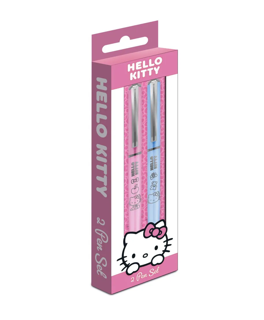 Hello Kitty Pink - zestaw 2 długopisów Zestaw dwóch długopisów Hello Kitty Pink to idealne rozwiązanie dla fanów kultowej postaci. Długopisy ozdobione trwałymi grafikami z Hello Kitty i wyposażone w czarny tusz zapewniają płynne i wygodne pisanie. Świetnie sprawdzą się w szkole, pracy i na co dzień. W zestawie znajdują się: 2 długopisy z czarnym tuszem Licencjonowany produkt Oryginalny, licencjonowany produkt Hello Kitty. Doskonały wybór do oferty szkolnej i prezentowej.