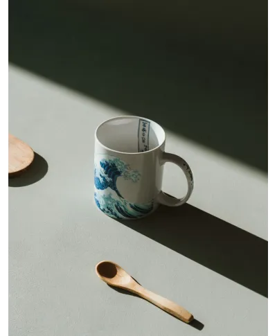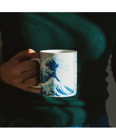 Hokusai Wielka Fala w Kanagawie Kubek Hokusai Wielka Fala w Kanagawie Kubek to hołd dla japońskiego mistrza druku Katsushiki Hokusai. Ten kubek przedstawia ikoniczny obraz Wielka Fala w Kanagawie, który jest jednym z najbardziej rozpoznawalnych dzieł sztuki japońskiej. Ciesz się swoim ulubionym napojem w towarzystwie tego pięknego i kultowego dzieła sztuki. Dokładne parametry: Pojemność: 300 ml Materiał: Ceramika Można myć w zmywarce: Tak Można używać w mikrofalówce: Tak Oficjalne wydanie Kubek posiada licencję producenta. Kupując w naszym sklepie masz 100% pewności, że otrzymasz oryginalny produkt. Zamawiając w autoryzowanym sklepie wspierasz ulubionych artystów, twórców i marki.