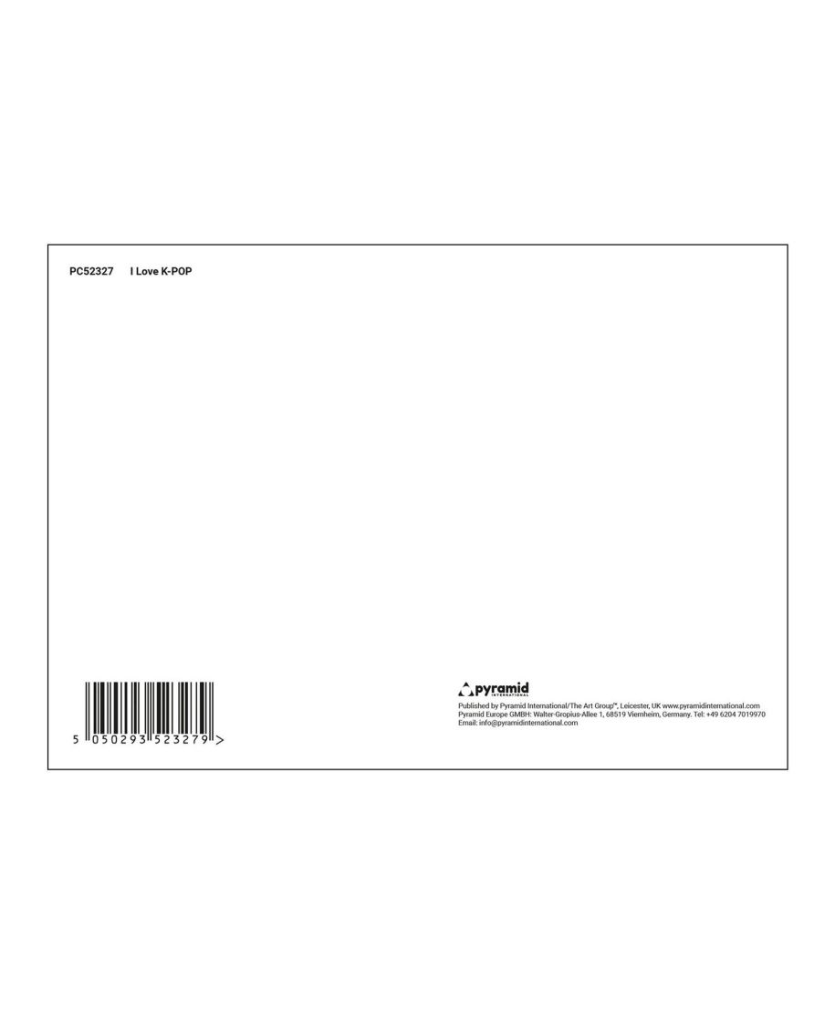 Pocztówka I Love K-Pop Numer katalogowy: PC52327 Producent: Pyramid International Wymiary: 14,8 x 10,5 cm Minimalistyczna pocztówka z czytelnym hasłem I Love K-Pop i motywem finger heart to estetyczny dodatek dla fanów koreańskiej popkultury. Prosta kompozycja i mocny kontrast sprawiają, że grafika jest bardzo wyrazista. Taki format dobrze sprawdza się jako drobny upominek lub kartka do krótkiej wiadomości. Motyw jest lekki, nowoczesny i łatwo dopasowuje się do różnych stylów. Szczegóły techniczne Motyw: I Love K-Pop Grafika: gest finger heart z sercem Kolorystyka: biel, czerń, pastelowy róż Oryginalny produkt z licencją K-Pop Demon Hunters.